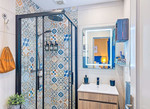 kamer, compleet met eigen doucheruimte, moderne plafondventilator/verlichting ,