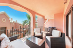 This beautifully presented three-bedroom townhouse is located within one of Estepona's most desirable gated communities, offering a perfect blend of style, space, and coastal living. Presented in show-home condition, the property is tastefully furnished and finished to an exceptional standard throughout. A striking double-height entrance hall creates an immediate sense of scale, leading to a guest cloakroom, a fully fitted contemporary kitchen, and a bright open-plan living and dining area. Floor-to-ceiling glass doors open to an expansive covered terrace, ideal for year-round relaxation and entertaining while overlooking the manicured gardens and out towards the sea.