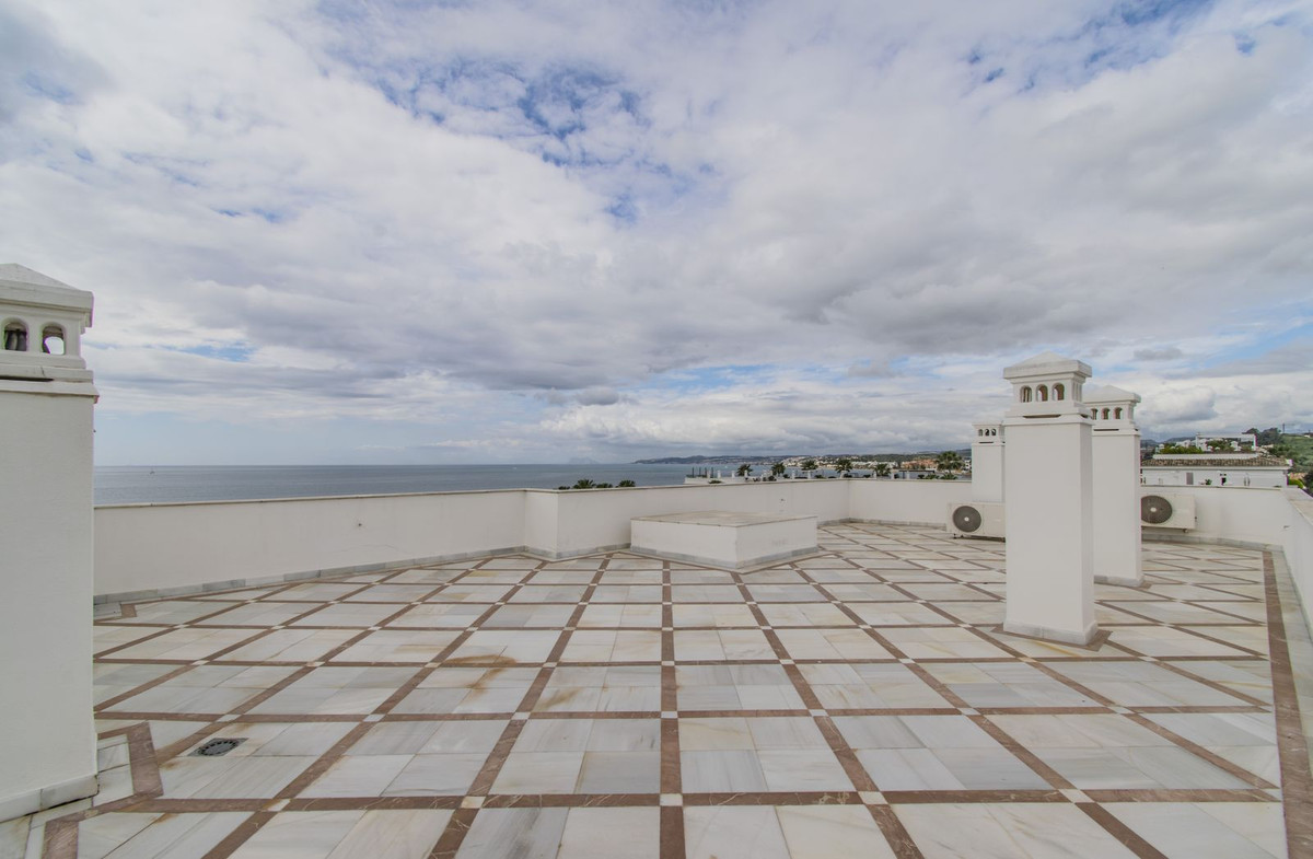 Spectacular luxury property with enormous terraces and stunning sea views, in a prime beachfront location in Estepona, just minutes from the port and surrounded by all kinds of amenities.