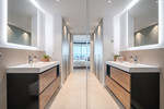 The home enjoys panoramic sea views from its elevated position, with a tiered architectural design that follows the natural slope of the land. Inside, you'll find a bright and open layout with floor-to-ceiling windows, offering a seamless connection between indoor and outdoor living. Interiors are finished with high-quality materials and a calm, modern design.