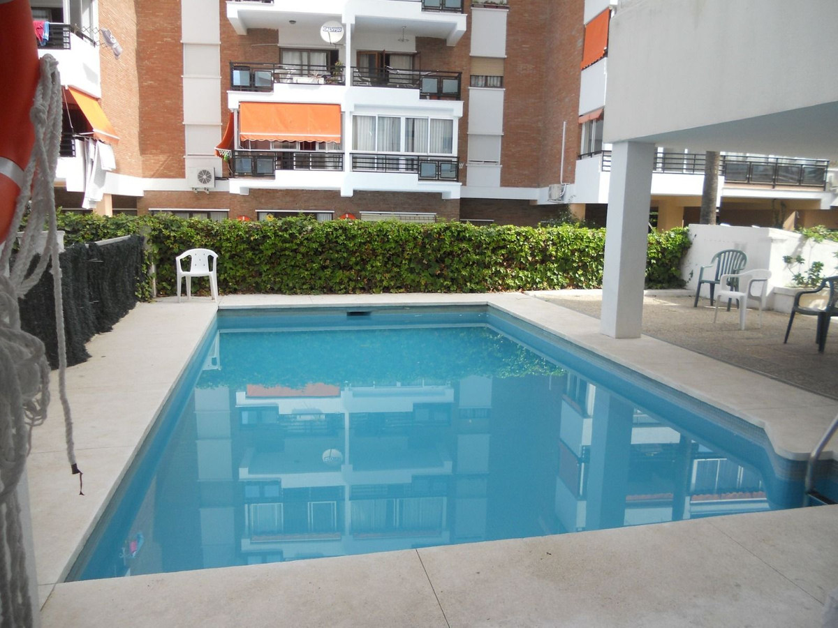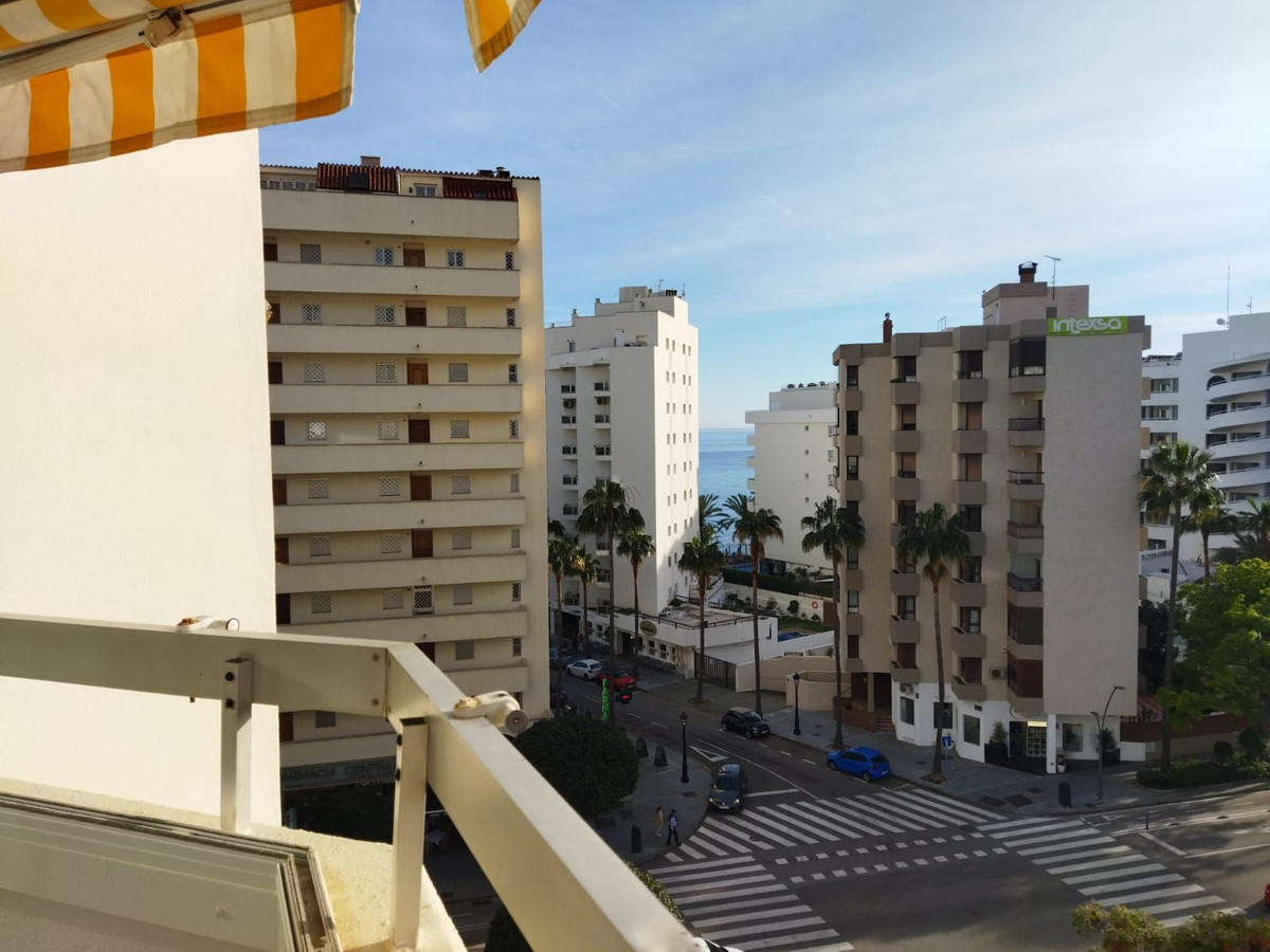 LA FONTANILLA!!!! APARTMENT WITH GARAGE, STORAGE ROOM, AND POOL!!! The best neighborhood located in the heart of Marbella. The apartment is on the sixth floor, facing southwest, which provides excellent natural light and includes hot/cold air conditioning. It comprises two bedrooms and a full bathroom with a shower and a window between the bedrooms, a living room with a separate, fully equipped kitchen, and a glazed terrace with glass curtains, allowing you to enjoy it year-round. It offers open and unobstructed views and has a concierge service.