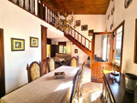 On the ground floor there is a large open plan L shaped dining room and living area with open fireplace - the striking and dominating feature of this room is the double height ceiling and spectacular solid wood gallery staircase with a mezzanine feature overlooking the dining area. Off the dining room is a very good size kitchen - a little old fashioned , but the kitchen cabinets are solid wood and a recent addition is a granite workshop and modern double sink in dark grey . New tiling and painting the cabinets would transform this kitchen at minimum expense! It would also be feasible to open up the kitchen area into the dining area to continue the open plan theme of the ground floor. Off the kitchen is a utility/laundry room .