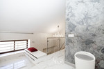 The house has two floors of approximately 50 meters each, is very bright and open, has white lacquered doors and windows, high gloss porcelain floors and a terrace on the upper floor.