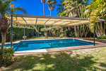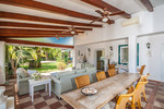 Furthermore the property is equipped with air conditioning, central heating and double glazing with shutters and mosquito nets, ensuring convenience and efficiency throughout the seasons. Outdoors, the property features a beautifully matured garden with automatic irrigation system, offering full privacy. A heated swimming pool with an electric cover, multiple terraces with various seating areas and a small outdoor kitchen create the perfect setting for Mediterranean living. Additional features include a private well with a 12.000 Liter water deposit and a garage for 2 cars with electric gates. A true gem in the sought-after Marbesa area, this villa combines charm, functionality, and luxury—ideal as a family residence or holiday retreat.