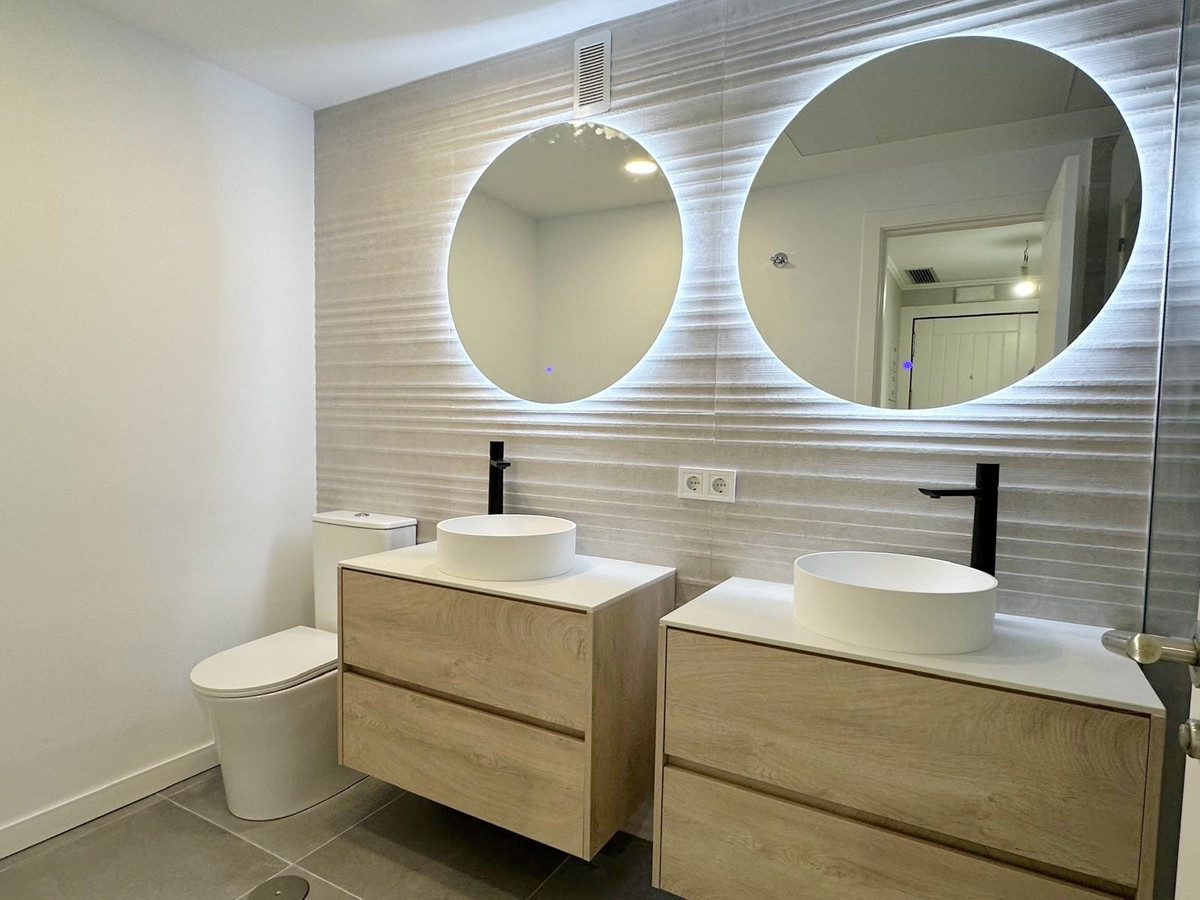 The apartment features two nice bedroom with large bathrooms, complemented by a beautiful living area with an independent kitchen and access to a peaceful terrace, ideal for relaxing and enjoying the outdoors.