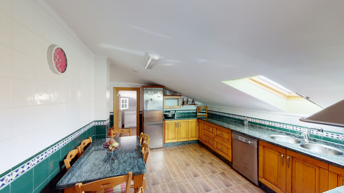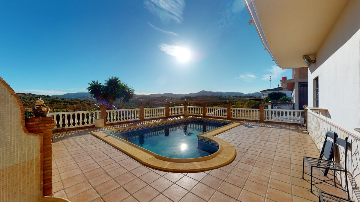 Deze goed gelegen ruime villa biedt de mogelijkheid voor twee families om elk apart te wonen. De garage van 217 m2 heeft plaats voor 5 auto ́s, een bureelruimte en opslagruimte. Uitgang naar de tuin met mooi zwembad, douche, fruitbomen en kippenhok. Aparte kamer met extra keuken/barbecue en overdekt terras. Gelijksvloers van 216 m2 met hall, ruime woonkamer, aansluitend grote volledig ingerichte keuken, voorraadruimte en groot buitenterras. Drie badkamers, drie slaapkamers met inbouwkasten en airco warm/koud. Waskamer die eventueel kan gebruikt worden als slaapkamer. Bovenverdieping van 159 m2. Woonkamer met hoog plafond, volledig ingerichte keuken met voorraadkamer, wasplaats, badkamer. Buitenterrasje. Het huis is in zeer goede kwaliteit gebouwd met de beste materialen daar de eigenaar de aannemer was. We zijn blij dat we dit droomhuis binnenkort aan u kunnen presenteren, hetzij persoonlijk, hetzij via een virtuele bezichtiging. Want deze wereld is uniek – net als onze Axarquía. In Andalusië. Aan de Costa del Sol. Hier, aan de zonnige kant van het leven…
