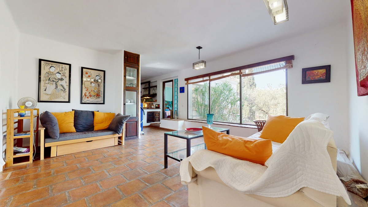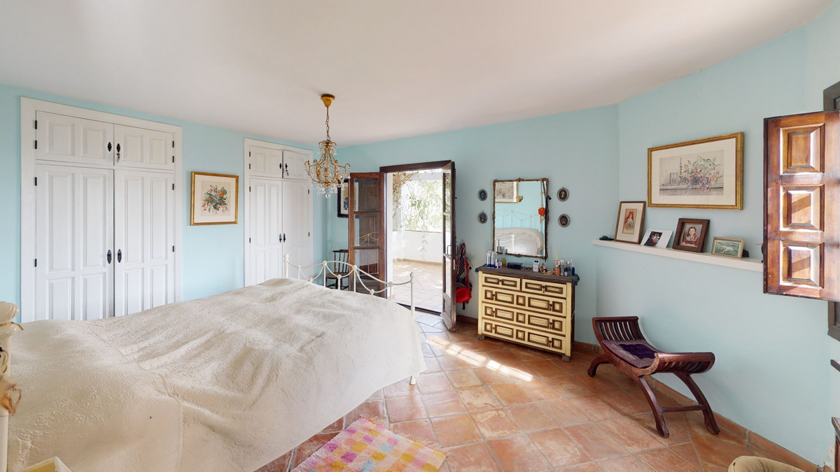 Bent u op zoek naar een oase in harmonie met de natuur? Een plek van rust en ontspanning waar de tijd wat langzamer gaat? Ja?! Dan laten wij u graag deze fantastische villa zien in de bergen van Torrox. Het biedt een imposant groots hoofdgebouw, een apart klein gastenverblijf en een zwembad evenals 5.569 m2 grond die overwegend vlak is en dus talloze mogelijkheden biedt. De indeling van het pand maakt het mogelijk om het hoofdgebouw te gebruiken als twee onafhankelijke wooneenheden, met aparte ingangen. Dit fantastische pand is perfect als meergezinswoning, B&B of als investeringsmogelijkheid voor een yogacentrum, evenementenlocatie, dansschool of meditatietempel…. Een bijna volledig verharde oprit leidt u naar een verharde parkeerplaats die gedeeltelijk overdekt is. Op dit niveau bevindt zich het charmante gastenverblijf met een eigen overdekt terras. Het is uitgerust met een gezellige open woon-/eetkamer met een bed, een keuken en een badkamer. De open haard zorgt voor behaaglijke warmte in de koudere maanden. Een oprit evenals trappen leiden naar het lagere niveau. Een andere zware houten deur met een ijzeren paardendeurklopper geeft toegang tot de ruime imposante woonkamer met open haard van het eerste deel van het huis. Rechts is een gastentoilet. Hiernaast is een kamer die momenteel in gebruik is als kantoor/bibliotheek. Het kan ook worden verwarmd tot een aangename temperatuur in de koelere seizoenen met de open haard. We hebben aangrenzend een kleine glazen kamer van waaruit u kunt genieten van het uitzicht op het omliggende platteland. Het grote terras aan de voorzijde van het huis biedt een adembenemend uitzicht op het bekende witte dorp Frigiliana en de Sierra de Tejada op de achtergrond. Dankzij de heuvelligging kan de holle ruimte onder dit terras toch worden afgesloten en indien nodig meer leefruimte creëren. Vanuit de woonkamer, eveneens met toegang tot het terras, komt men in de ruime open keuken met eethoek. Het samenspel van traditioneel en modern is hier perfect tot stand gekomen. Een glazen schuifpui leidt naar de prachtige u-vormige en typisch Andalusische binnenplaats met fontein. Op de tweede verdieping van het huis bevinden zich drie slaapkamers en twee badkamers. De hoofdslaapkamer heeft een grote moderne badkamer met een eigen sauna evenals een ligbad en douche. Vanuit twee van de slaapkamers is er toegang tot een betoverd u-vormig balkon met uitzicht op de Andalusische binnenplaats. Door de houten balken en beplanting voelt het alsof je in een ander tijdperk bent gestapt. Een gang leidt vanaf dit balkon naar het tweede deel van het huis. Op de tweede verdieping is er een slaapkamer met nog een open haard, de Sunroom genoemd vanwege de kleur van de muur. Een trap leidt naar een enorme open ruimte met een groot plat dakraam dat natuurlijk licht binnenlaat. De ruimte kan voor een breed scala aan mogelijkheden worden gebruikt. Als dansstudio, atelier of vergaderruimte. Ook hier kan een behaaglijke temperatuur worden gecreëerd met een geweldige open haard. Op dit niveau hebben we ook een grote zware houten deur de aparte ingang naar dit deel van het huis. Direct naast de ingang is er een volledig uitgeruste badkamer. Via een open boog komt u in een woonkamer met een kleine charmante keuken. Door bijna kamerhoge ramen kijk je uit op een idyllische vijver en op het platteland. Er is nog een badkamer en twee slaapkamers beide met toegang tot de buitenruimte. De buitenruimte omvat een zwembad, veel terrassen met zitjes, een kleine moestuin en enkele olijfbomen. De bodega of wijnkelder maakt het landhuis helemaal af en garandeert de juiste temperatuur voor uw wijn. We zijn blij dat we dit droomhuis binnenkort aan u mogen voorstellen, hetzij persoonlijk, hetzij via een virtuele bezichtiging. Want deze wereld is uniek – net als onze Axarquía. In Andalusië. Aan de Costa del Sol. Hier, aan de zonnige kant van het leven…