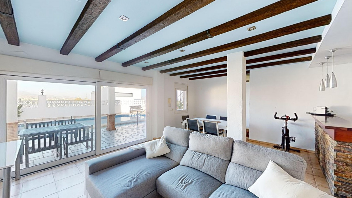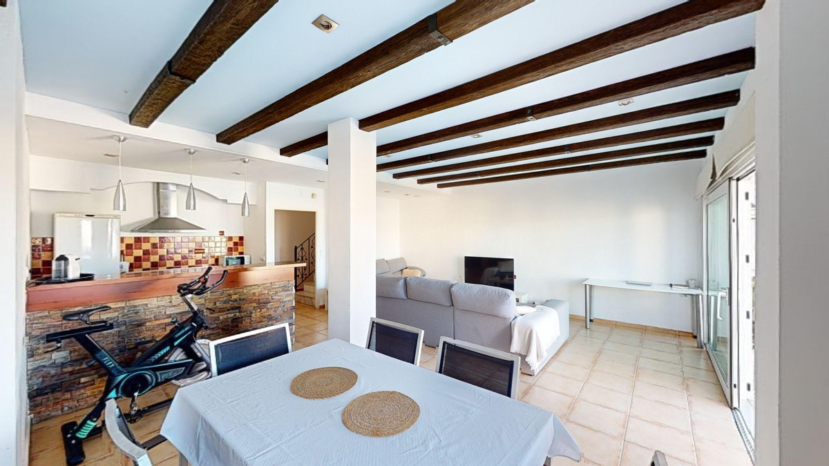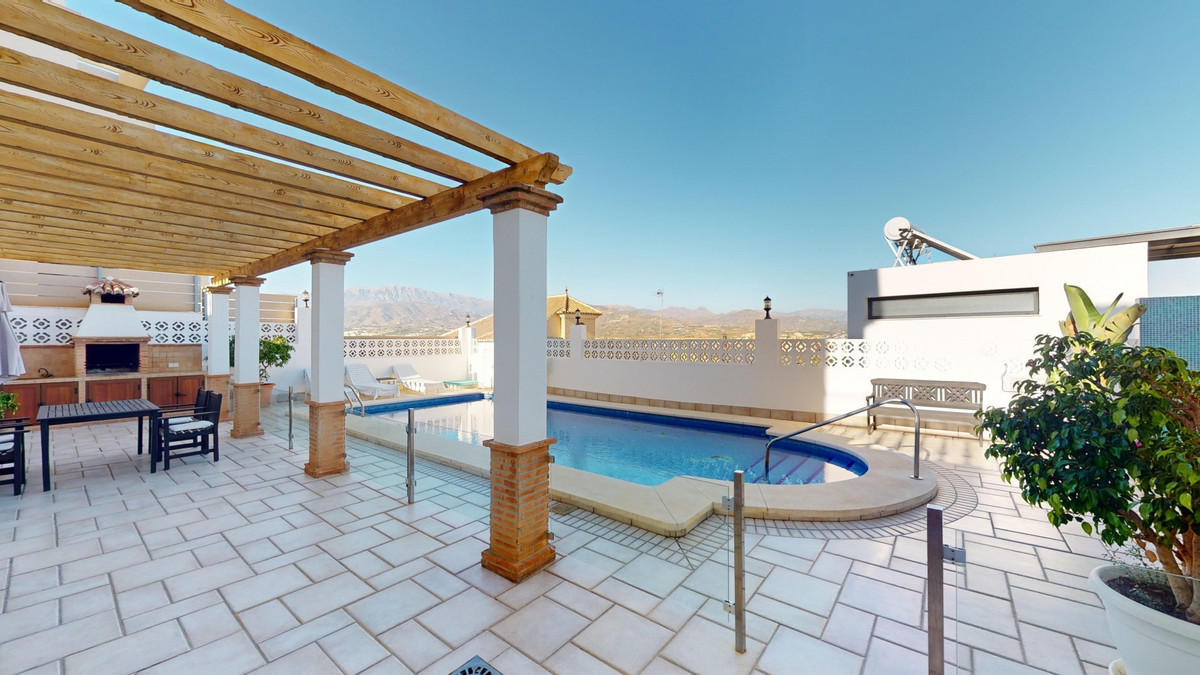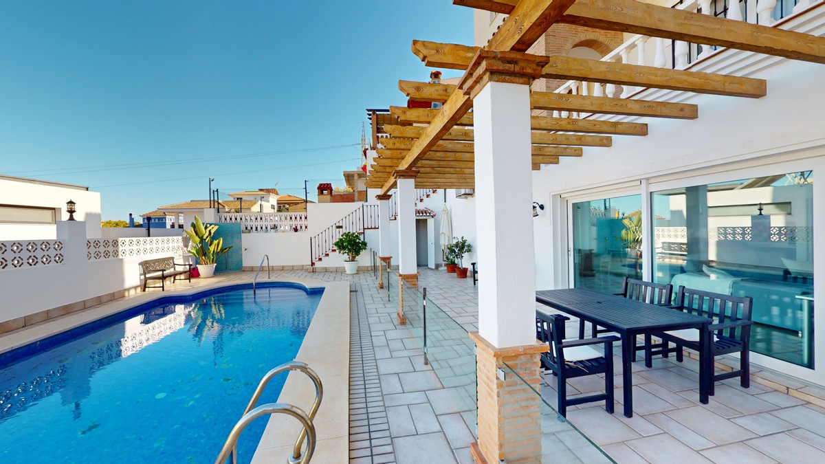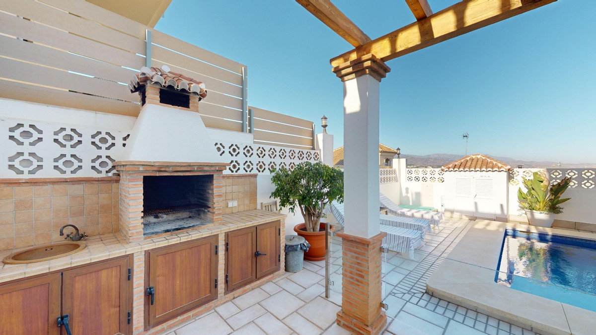 Ontdek uw mediterrane droom in dit schitterende 3-slaapkamer, 4-badkamer toevluchtsoord in een privé en beveiligde urbanisatie in Torre del Mar, waar rust en veiligheid voorop staan. Deze exclusieve woonomgeving met slechts enkele buren zorgt voor rust en privacy, op slechts enkele minuten van het levendige centrum van Torre del Mar en 5 minuten van de prachtige stranden. Verspreid over drie zonovergoten verdiepingen en 204 vierkante meter, verenigt dit meesterwerk moderne luxe met traditionele Spaanse charme. Stap binnen in een wereld van elegantie, waar rustieke houten balken de hoge plafonds sieren en een warme, verfijnde sfeer creëren. De open woon- en eetkamer nodigt u uit om te ontspannen en gasten te ontvangen, met volop natuurlijk licht en prachtige uitzichten. De gourmetkeuken is een droom voor de kookliefhebber, voorzien van strakke houten kasten, hoogwaardige granieten werkbladen en de nieuwste apparatuur. Grote ramen boven het aanrecht bieden een schilderachtig uitzicht. De rustige master slaapkamer, een ruime toevluchtsoord van 16 m2, combineert stijl en comfort. Zes luxe badkamers, waaronder een met turquoise accenten, bieden een spa-achtige ervaring thuis. Dit huis is ontworpen voor de veeleisende koper en biedt de perfecte balans tussen esthetiek en functionaliteit, met een wasruimte en royale opslagruimte. Torre del Mar is een bruisende kustplaats die bekend staat om zijn prachtige stranden, charmante sfeer aan zee en uitstekende eetgelegenheden. Gelegen op een korte rit van de levendige boulevard van Torre del Mar, biedt deze woning de perfecte combinatie van rustig wonen en gemakkelijke toegang tot lokale voorzieningen. We zijn blij dat we dit droomhuis binnenkort aan u mogen voorstellen, hetzij persoonlijk, hetzij via een virtuele bezichtiging. Want deze wereld is uniek – net als onze Axarquía. In Andalusië. Aan de Costa del Sol. Hier, aan de zonnige kant van het leven…