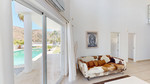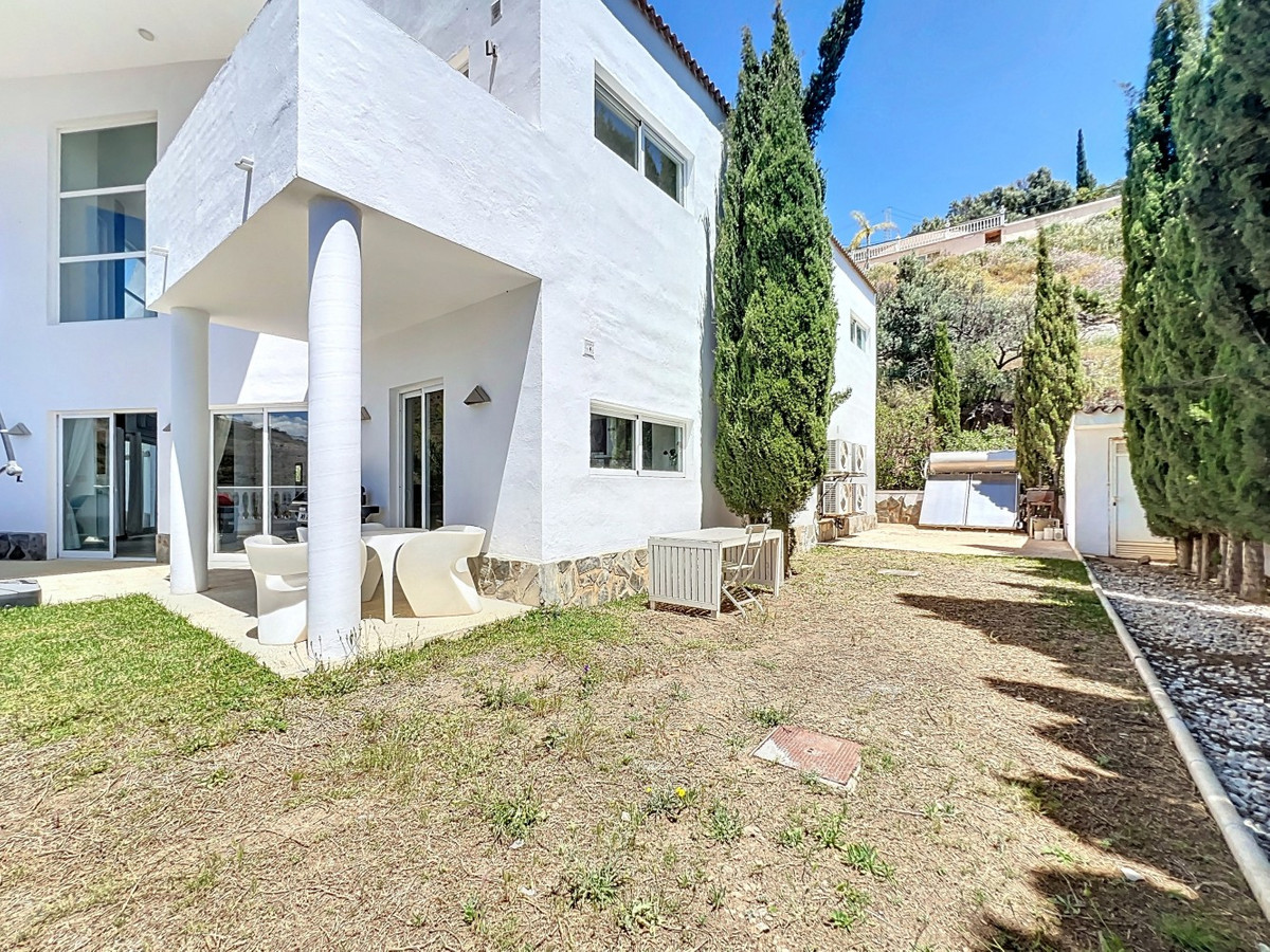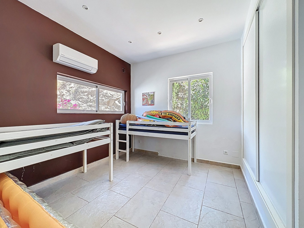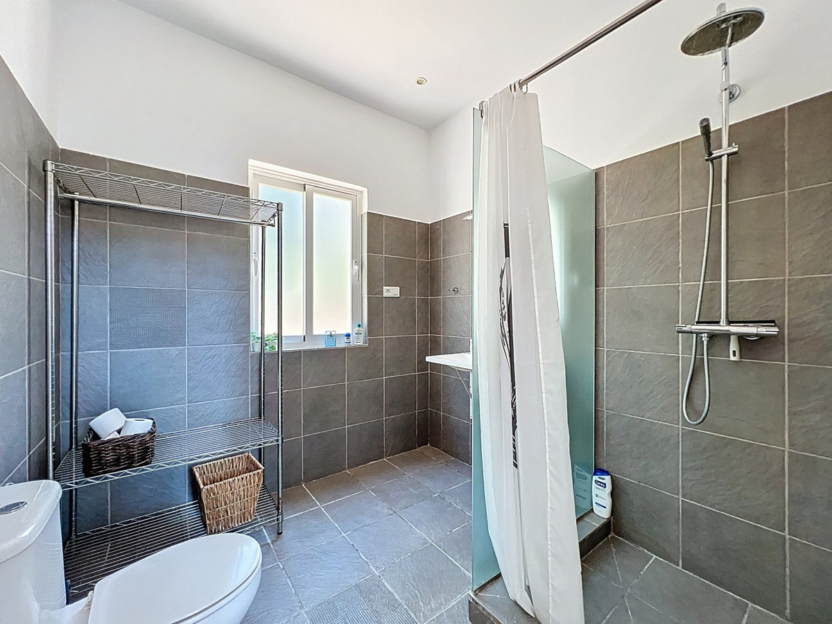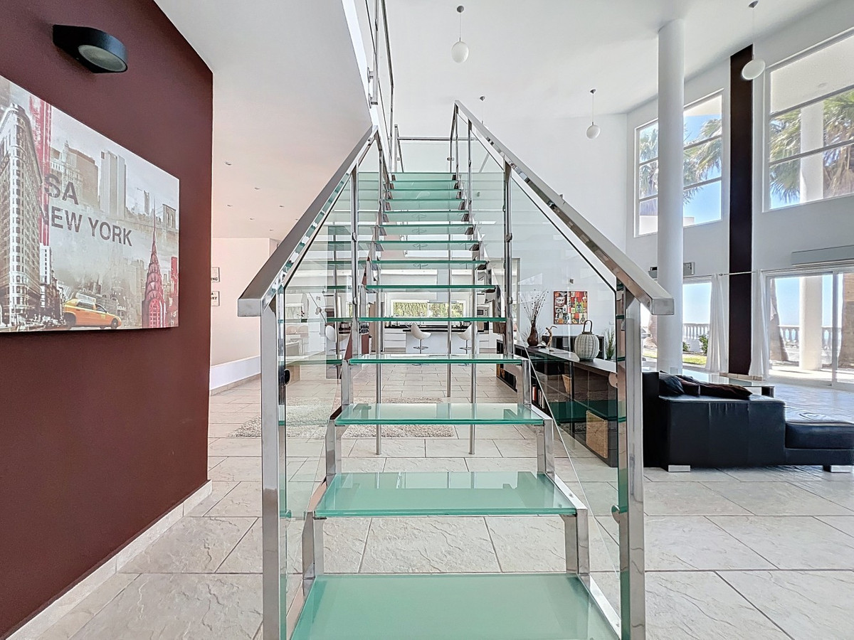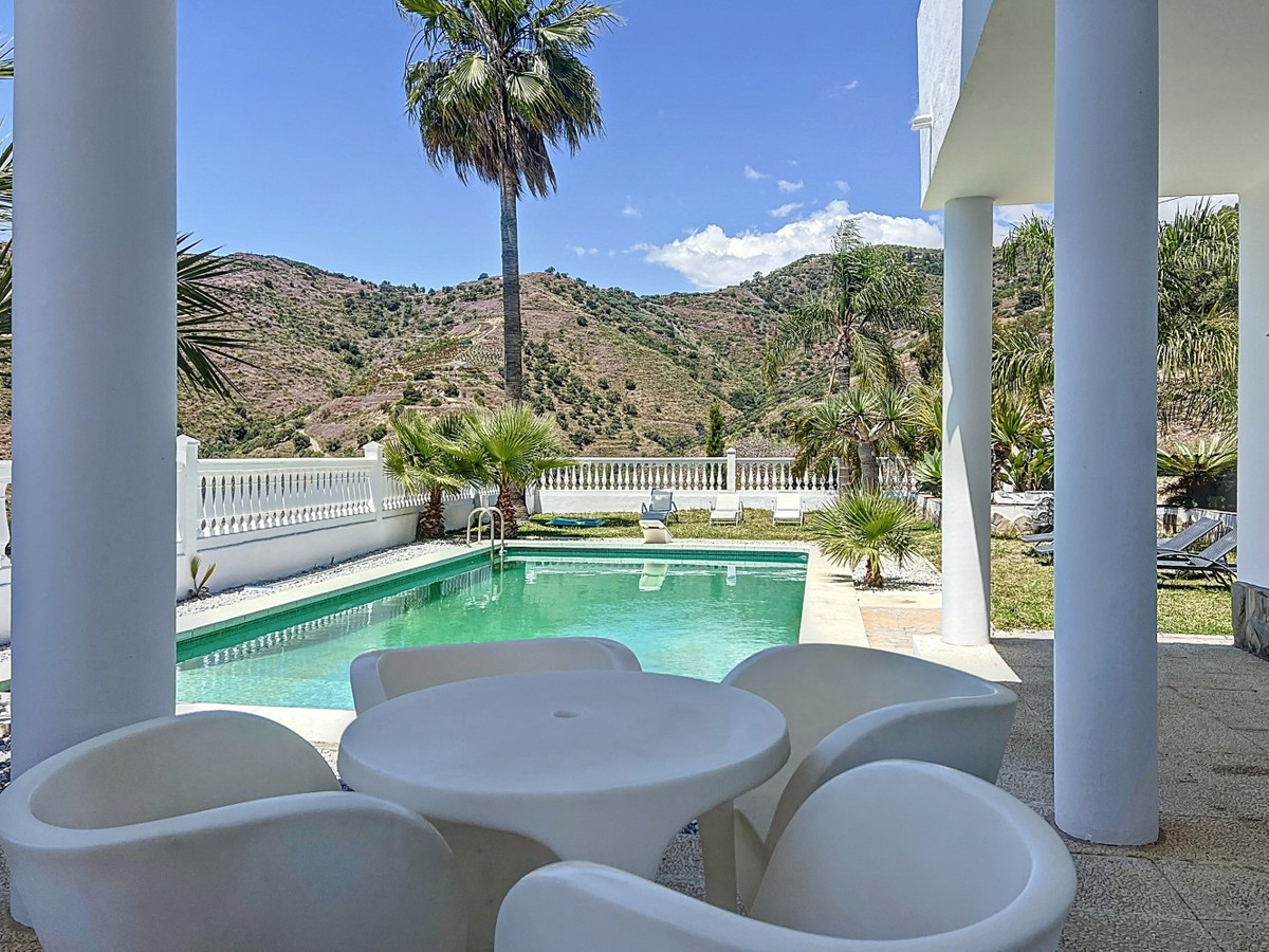 Deze indrukwekkende villa in Málaga, Spanje, biedt een harmonieuze mix van ruimte, luxe en modern design. Het pand beslaat 395,8 m2 verdeeld over twee verdiepingen en beschikt over 7 slaapkamers en 5 badkamers, wat het ideaal maakt voor grote gezinnen of mensen die graag gasten ontvangen. De begane grond, met een oppervlakte van 212,7 m2, heeft een adembenemende open woonruimte met hoge plafonds. Van vloer tot plafond geplaatste ramen en schuifdeuren vullen de ruimte met natuurlijk licht en bieden naadloos binnen- en buitenleven. De woonkamer wordt gekarakteriseerd door een strakke open haard en wordt aangevuld met comfortabele, moderne meubels. De state-of-the-art keuken is een droom voor elke chef-kok en biedt glanzende witte kasten, hoogwaardige apparaten en een royaal eiland met zitplaatsen aan de bar. Grote ramen bieden een prachtig uitzicht op het omliggende landschap terwijl je maaltijden bereidt. Een uniek kenmerk van de begane grond is de indoor zen-tuin, compleet met zand en decoratieve planten, die een rustgevende sfeer toevoegt aan de ruimte. De hallen zijn breed en goed verlicht, met zorgvuldig gekozen kunstwerken aan de muren. Via een moderne trap met glazen leuningen kom je op de tweede verdieping, die 183,0 m2 extra woonruimte biedt. De hoofdslaapkamer van 26,9 m2 biedt een prachtig uitzicht en een en-suite badkamer. De badkamers door het hele pand zijn stijlvol en modern, met grote tegels, inloopdouches en hedendaagse armaturen. Sommige badkamers hebben unieke ontwerpelementen, zoals douchgordijnen met een krantenprint, die een speelse touch toevoegen aan het anders minimalistische ontwerp. Buiten profiteert het pand van zijn verhoogde positie, met panoramisch uitzicht op de omliggende bergen, het platteland en de glinsterende Middellandse Zee. De buitenruimte heeft een groot zwembad, perfect om te ontspannen of te entertainen terwijl je geniet van het adembenemende uitzicht. Het pand biedt goede toegang en zorgt voor een gemakkelijke verbinding met nabijgelegen voorzieningen en attracties. Grote terrassen bieden voldoende ruimte voor buiten ontspanning en entertainment, waardoor deze villa de ideale plek is om in stijl van het Spaanse klimaat te genieten. Het kleurenschema van de villa is overwegend wit, wat een lichte, luchtige sfeer creëert die perfect past bij het Spaanse klimaat. Kleurrijke accenten in meubels en kunstwerken zorgen voor visuele interesse zonder de serene sfeer te verstoren. Deze villa is de belichaming van modern Spaans wonen, met ruime interieurs, hoogwaardige afwerkingen en adembenemende uitzichten, alles samengebracht in een indrukwekkend geheel een waar droomhuis. We zijn blij dat we dit droomhuis binnenkort aan u mogen voorstellen, hetzij persoonlijk, hetzij via een virtuele bezichtiging. Want deze wereld is uniek – net als onze Axarquía. In Andalusië. Aan de Costa del Sol. Hier, aan de zonnige kant van het leven…