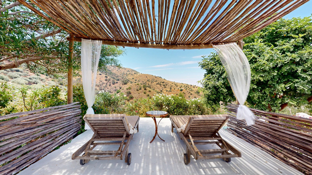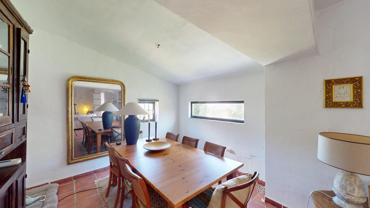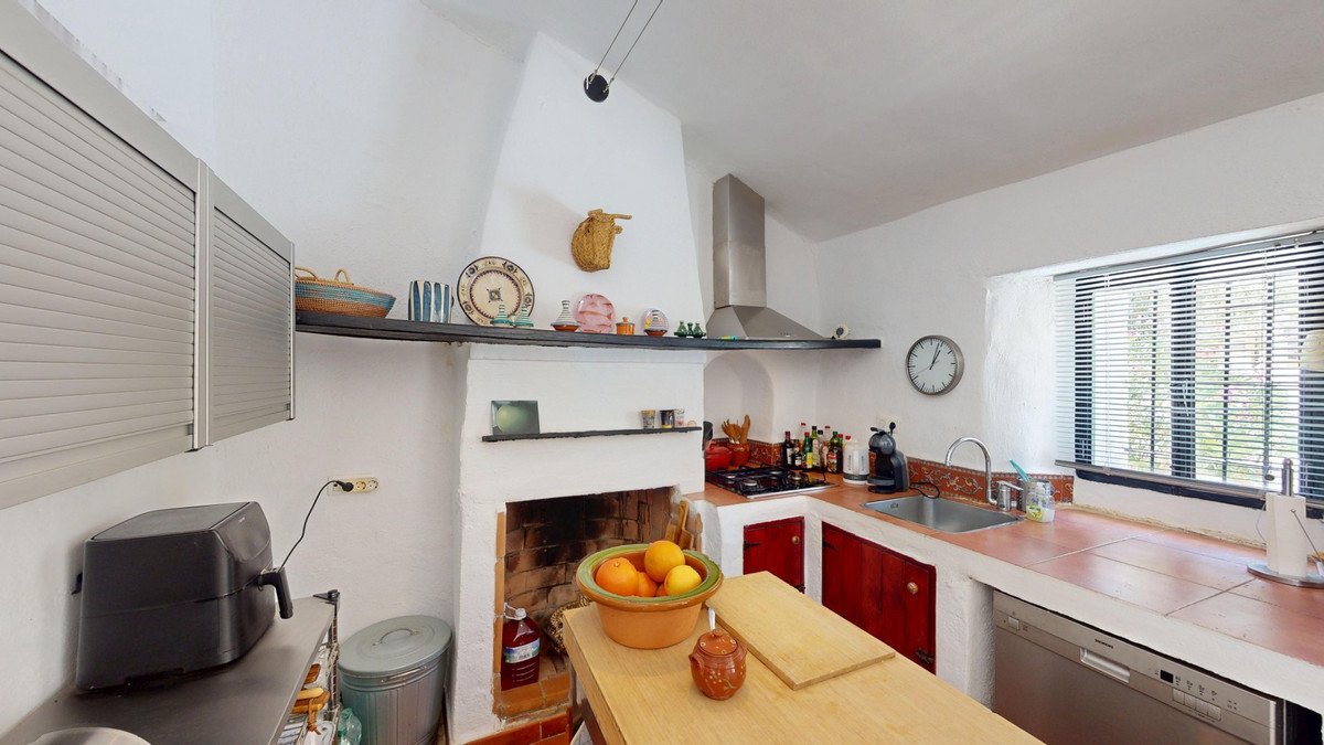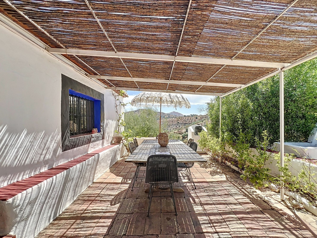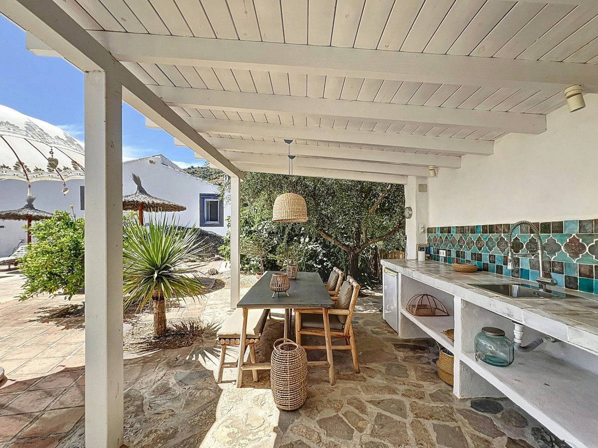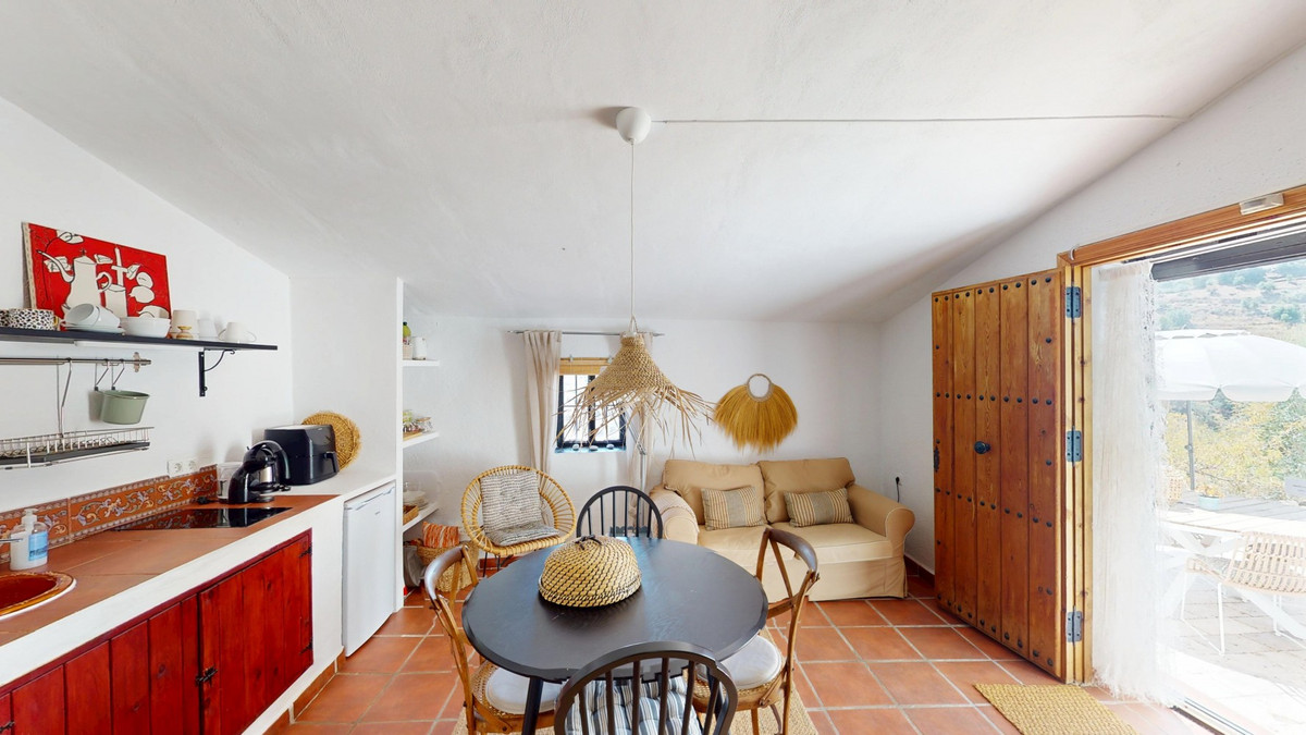 Gelegen in de heuvels van Arenas, Málaga, is deze betoverende cortijo veel meer dan een huis het is een mediterraan toevluchtsoord vol karakter, rust en mogelijkheden. Verdeeld in drie aparte appartementen is het ideaal voor gebruik als charmante B&B of als ruim familieverblijf. Flexibel, comfortabel en vol ziel. Het hoofdappartement beschikt over twee slaapkamers en twee stijlvolle badkamers, elk met inloopdouche, marmeren wastafels en zorgvuldig gekozen tegels. De open leefruimte straalt warmte uit dankzij de terracottavloeren, een zachte grijze bank, rotan accenten en een kristallen kroonluchter. De keuken is praktisch én mooi, met witte kasten, kleurrijke tegels en moderne apparatuur zoals een oven en vaatwasser. Het tweede appartement is een knusse en lichte eenheid met één slaapkamer. Klein van formaat, maar met alles wat je nodig hebt: een kitchenette, een elegante badkamer met tropische bladtegels, en sfeervolle details zoals kroonluchters en decoratieve spiegels. Natuurlijk materialen zoals rotan en terracotta geven het geheel een warme uitstraling. Het derde appartement heeft een slaapkamer, badkamer, kantoor, keuken en woonkamer. Witte muren, een open haard en grote ramen geven een frisse, lichte sfeer, terwijl rode keukenkastjes en rustieke meubels zorgen voor persoonlijkheid. Elk vertrek is met zorg ingericht met handgemaakte elementen en unieke verlichting. Maar het is de buitenruimte die deze plek echt bijzonder maakt. Omringd door een prachtig berglandschap, vind je overal charmante plekjes: natuurstenen vloeren, schaduwrijke terrassen, verborgen zithoekjes, een daybed voor een middagdutje en een zwembad met helder turquoise water. De overdekte buitenkeuken is een pareltje, met handgemaakte tegels en een ambachtelijk werkblad een weerspiegeling van de liefde en aandacht die in elk detail zit. Deze cortijo ademt karakter een perfecte plek voor een nieuwe levensfase of een bijzonder B&B-project in Andalusië. We zijn blij dat we dit droomhuis binnenkort aan u mogen voorstellen, hetzij persoonlijk, hetzij via een virtuele bezichtiging. Want deze wereld is uniek – net als onze Axarquía. In Andalusië. Aan de Costa del Sol. Hier, aan de zonnige kant van het leven…