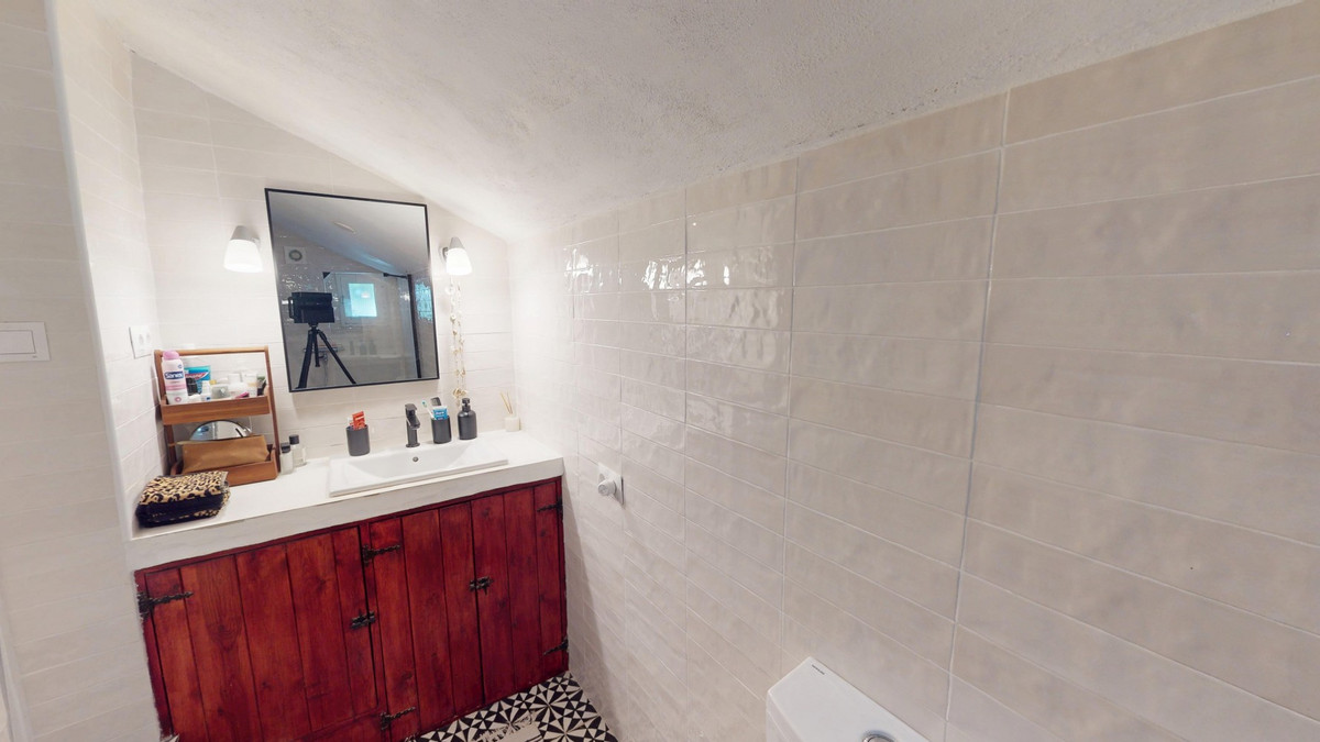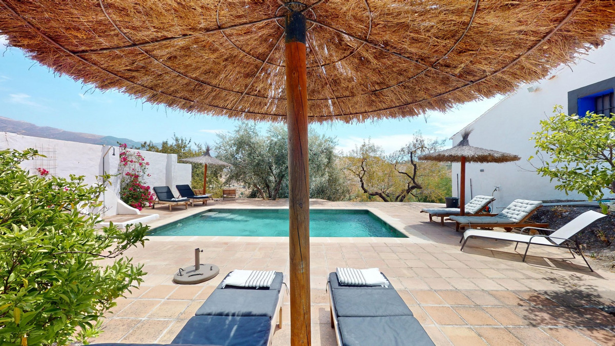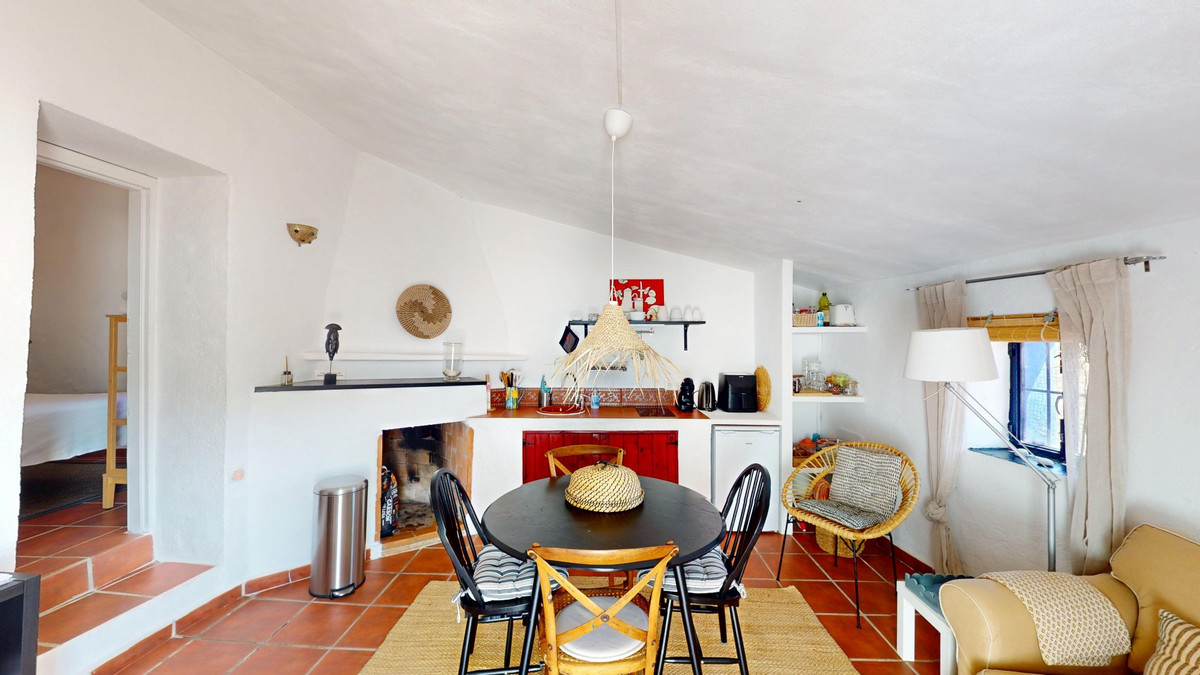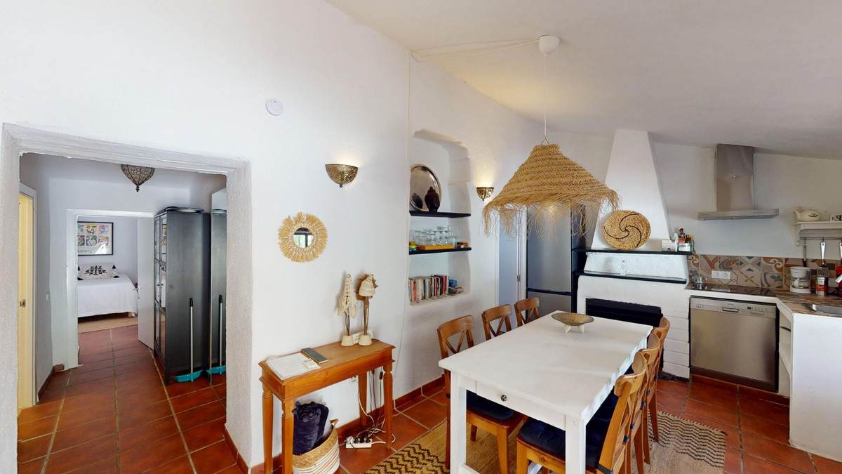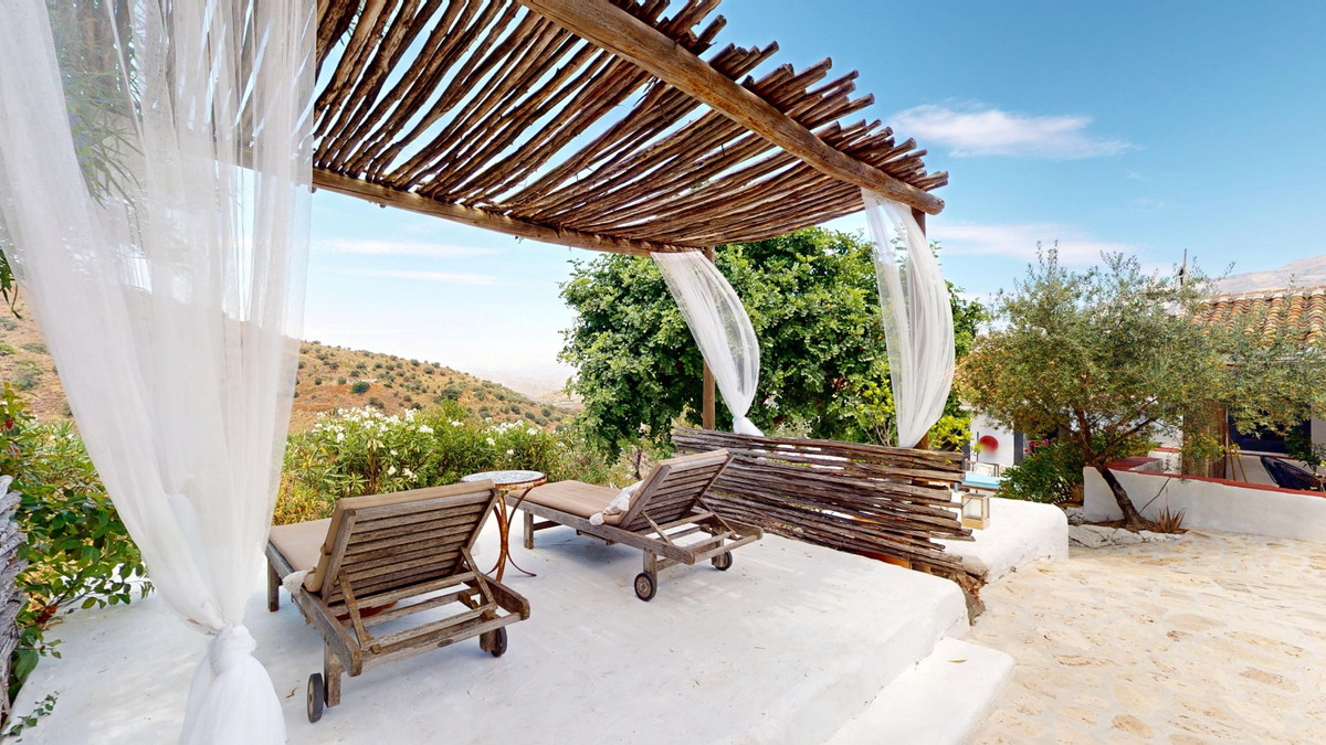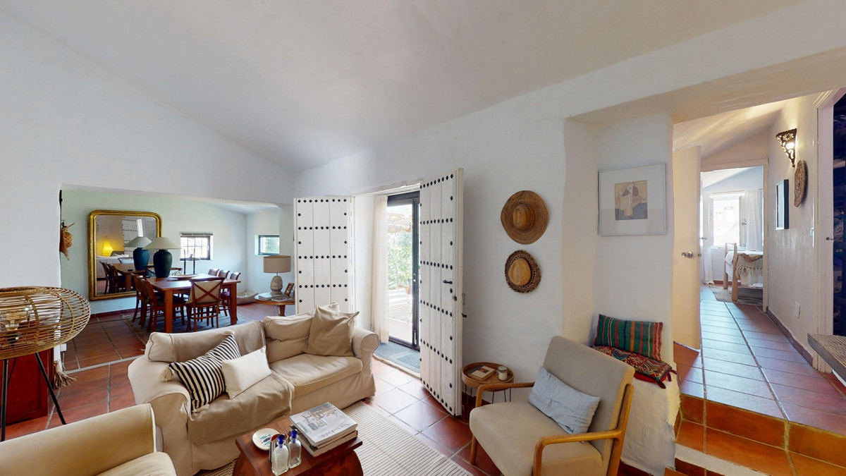 Gelegen in de heuvels van Arenas, Málaga, is deze betoverende cortijo veel meer dan een huis het is een mediterraan toevluchtsoord vol karakter, rust en mogelijkheden. Verdeeld in drie aparte appartementen is het ideaal voor gebruik als charmante B&B of als ruim familieverblijf. Flexibel, comfortabel en vol ziel. Het hoofdappartement beschikt over twee slaapkamers en twee stijlvolle badkamers, elk met inloopdouche, marmeren wastafels en zorgvuldig gekozen tegels. De open leefruimte straalt warmte uit dankzij de terracottavloeren, een zachte grijze bank, rotan accenten en een kristallen kroonluchter. De keuken is praktisch én mooi, met witte kasten, kleurrijke tegels en moderne apparatuur zoals een oven en vaatwasser. Het tweede appartement is een knusse en lichte eenheid met één slaapkamer. Klein van formaat, maar met alles wat je nodig hebt: een kitchenette, een elegante badkamer met tropische bladtegels, en sfeervolle details zoals kroonluchters en decoratieve spiegels. Natuurlijk materialen zoals rotan en terracotta geven het geheel een warme uitstraling. Het derde appartement heeft een slaapkamer, badkamer, kantoor, keuken en woonkamer. Witte muren, een open haard en grote ramen geven een frisse, lichte sfeer, terwijl rode keukenkastjes en rustieke meubels zorgen voor persoonlijkheid. Elk vertrek is met zorg ingericht met handgemaakte elementen en unieke verlichting. Maar het is de buitenruimte die deze plek echt bijzonder maakt. Omringd door een prachtig berglandschap, vind je overal charmante plekjes: natuurstenen vloeren, schaduwrijke terrassen, verborgen zithoekjes, een daybed voor een middagdutje en een zwembad met helder turquoise water. De overdekte buitenkeuken is een pareltje, met handgemaakte tegels en een ambachtelijk werkblad een weerspiegeling van de liefde en aandacht die in elk detail zit. Deze cortijo ademt karakter een perfecte plek voor een nieuwe levensfase of een bijzonder B&B-project in Andalusië. We zijn blij dat we dit droomhuis binnenkort aan u mogen voorstellen, hetzij persoonlijk, hetzij via een virtuele bezichtiging. Want deze wereld is uniek – net als onze Axarquía. In Andalusië. Aan de Costa del Sol. Hier, aan de zonnige kant van het leven…
