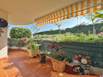 From the dining area, you move into the large, light-filled living room, directly connected to the generous glazed terrace. This space is perfect for enjoying year-round, offering open views of the surrounding greenery. The first bedroom features direct access to the terrace, allowing you to enjoy the outdoor space at any time of day. Adjacent to it is the first complete bathroom, with a window that brings in natural light and ventilation. Further down the corridor, you'll find the primary bedroom, a true master suite, also with private access to the glazed terrace and its own en-suite bathroom, ensuring privacy and comfort.