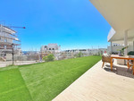 The true highlight of this property is its very large covered terrace, which connects all rooms, including the living room, kitchen, and both bedrooms. This exceptional outdoor space is designed for enjoying the Mediterranean lifestyle, with a lounge area furnished with sofas, a dedicated barbecue space, and a private section with natural grass where you can create your own green garden corner. From here, you can enjoy beautiful sea views, making the terrace a perfect place to relax or entertain guests throughout the year.