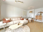 Upon entering the apartment, you are welcomed by a bright and spacious living room that combines a comfortable lounge with sofas, a dining area, and a fully equipped open-plan kitchen. Large sliding doors flood the space with natural light and provide direct access to the generous terrace. To the left lies the first bedroom with its own en-suite bathroom, while further along you will find the master bedroom, also featuring an en-suite and direct access to the terrace.
