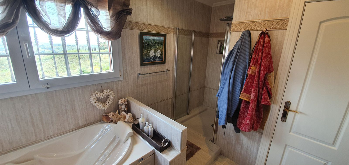 IMPRESSIVE DESIGN VILLA WITH PANORAMIC VIEWS TO THE MEDITERRANEAN SEA, COSTA DEL SOL Andalusian style, immaculate property in great condition. 5 bedrooms, 4 bathrooms, 1 toilet, sauna, private infinity pool overlooking the sea. Very quiet and very private area to enjoy the tranquility and atmosphere of the area. The property consists of 623 m2 built on a 10,000m2 plot. 360º view of golf, mountains, sea and more. Upon arriving at the property, passing through its automatic gate, you reach a road that leads to the entrance of the property, easily parking more than 10 cars inside it. You enter a very stylish hall, it is a property that combines the rustic Andalusian style and the modern. On this floor we find 2 very spacious rooms with direct access to the infinity pool area, a dining area for more than 14 diners, a large kitchen of the highest standing, a large pantry prepared for large events, a barbecue, infinity pool of more than 60 square meters heated, gardens in perfect condition, area of ​​fruit trees. On this floor we also have access to the rest of the property's floors, including a separate one for the service apartment. If we go up to the second floor we find a reception area that gives access to a large main room, completely private from the rest of the house, in it we have a bathroom with all the necessities en suite and a large L-shaped dressing room. Here we have access to a terrace with great views of the pool, sea, mountains of Mijas and golf course. On the ground floor we have the basement area, which can be adapted for a games room, cinema, gym, whatever suits you best with more than 80 square meters and access to the garden, 3 bedrooms, one of them with an en-suite bathroom and another bathroom to share between both rooms. From this floor we have direct access to the Sauna area with a complete bathroom for the pool area. The property has double glazing in all its rooms, all of them being large and has a water tank of 50,000 liters of water to keep as a reserve and use for the house. It has air conditioning and central heating. A house to enjoy the surroundings, the tranquility and the proximity to all services. 25 minutes to Marbella 10 minutes from Cala de Mijas 10 minutes from Fuengirola 25 minutes from Malaga Costa del Sol AGP International Airport 2 minutes from golf 2 minutes from the field and hiking area. If you are looking for something exclusive, do not hesitate to visit it.