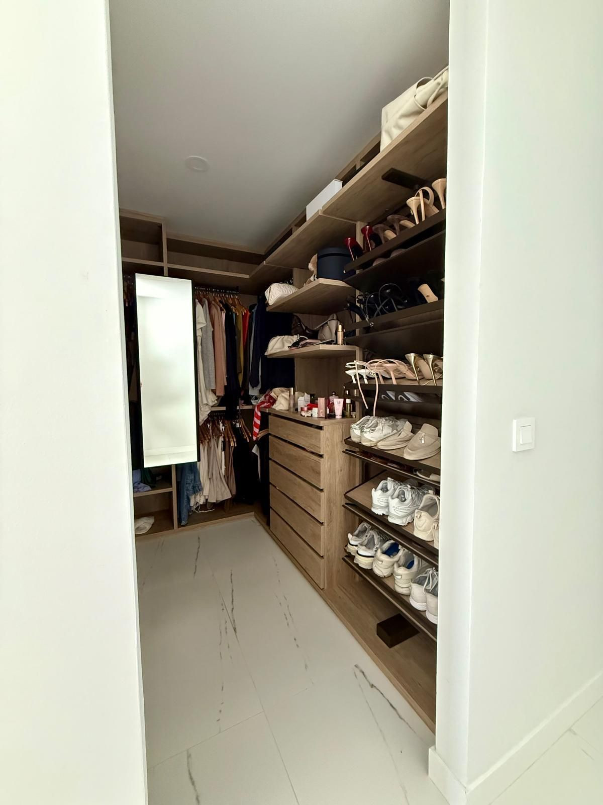 The apartment arrives fully furnished and turn-key ready, allowing new owners to seamlessly transition into their coastal paradise. High-end finishes throughout, from sleek built-in wardrobes to contemporary fixtures, elevate the everyday experience. A standout feature is the expansive terrace and balcony, where residents can bask in stunning panoramic views of the sea and surrounding mountains, transforming simple moments like morning coffee or evening gatherings into unforgettable experiences. Complementing this is a large storage room, thoughtfully designed with ventilation and natural light, providing functional versatility for hobbies, extra storage, or even a home office setup. Parking is abundantly catered to with three dedicated spaces included, plus an already-installed electric car charger to support modern, green transportation needs— with the option to purchase an additional spot for added convenience.