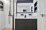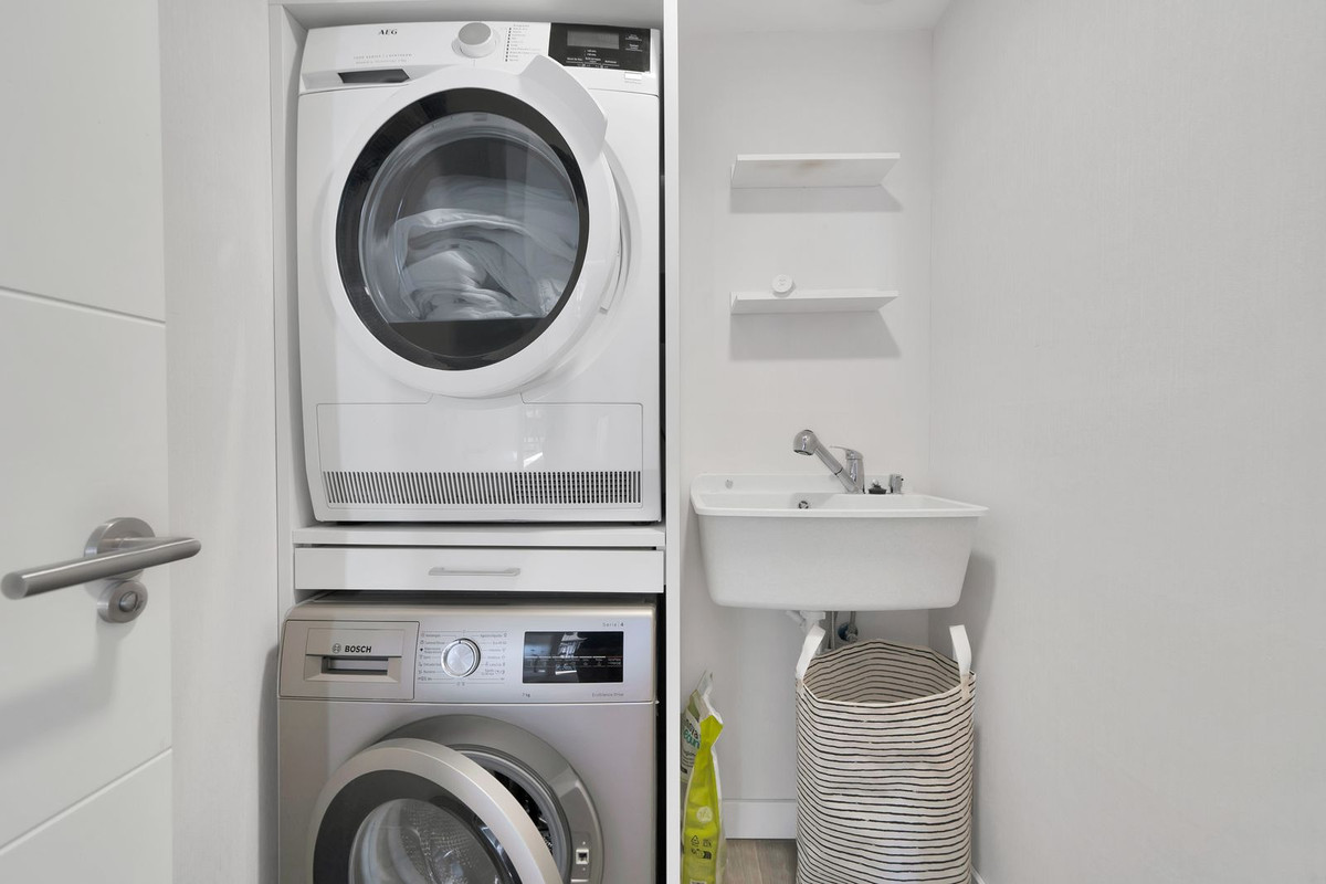 - Interior Upgrades: Includes an open-plan living area (kitchen wall removed), custom-made furniture in living room for optimized space, a fully renovated second bathroom, smart storage like an optimized walk-in closet, and a practical laundry room.