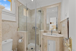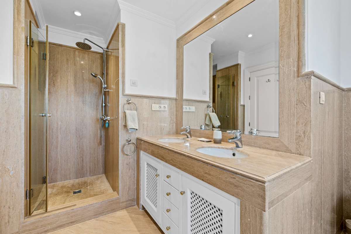 De woning heeft drie tweepersoonsslaapkamers met eigen badkamer, waaronder de master suite met een grote privébadkamer met een hoekjacuzzi, inloopdouche en dubbele wastafels. Elke slaapkamer heeft directe toegang tot het ruime terras. Er is ook een apart gastentoilet. Er is airconditioning in het hele huis en vloerverwarming in de badkamers.