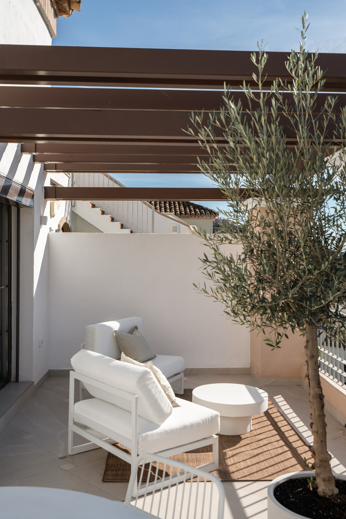 Ontdek dit prachtige hoek penthouse in het gewilde La Torre, Los Arqueros, nu volledig gerenoveerd met elegante hedendaagse afwerkingen en verfijnd vakmanschap. De open keuken sluit naadloos aan op de ruime woonkamer en creëert een licht gevulde omgeving die verfijning en comfort perfect combineert, een transformatie die door Elliott James is goedgekeurd. Onder de drie prachtig ingerichte slaapkamers en twee stijlvolle badkamers, is men bedachtzaam omgezet in een toegewijd kantoor, ideaal voor op afstand werkende ondernemers of individuen die de voorkeur geven aan een werkplek vanuit huis. Deze slimme aanpassing verbetert de veelzijdigheid van de woning terwijl het behoud van zijn gevoel van rust en luxe.