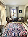 THE VILLA HAS A SINGULAR ARCHITECTURE WITH VERY THICK WALLS AND WOODEN DECORATIVE ELEMENTS.