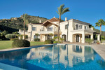 This exclusive property offers stunning views of the sea, the Spanish and African coasts and Gibraltar and is situated in a very private and protected location in the elegant and gated Marbella Club Golf Resort. Built with the highest quality; solid wooden floors, Travertino marble, custom made windows, excellent isolation, very modern domotic system, solar and heat pumps for hot water and heating, individually adjustable underfloor heating (solar energy) throughout the house, illuminated and heated swimming pool, poolside barbecue area, spa and gym area, wine cellar, elegant eat-in kitchen, spacious ensuite bedrooms with adjoining bathrooms, are just some of the many outstanding amenities of this beautiful home. The garden is a dream, it has been lovingly landscaped and planned by its owners and has a fully automatic irrigation system. The flat plateau plot has been secured on all sides and is well fenced. Marbella Club Golf Resort with its 18-hole golf course is very privileged and private, yet only 20 minutes away from Marbella, located in the middle of the beautiful Benahavis mountains. This residential area has a gated entrance and 24-hour security. Marbella Club Golf Resort has a wonderful restaurant just 10min walk from the villa where You can enjoy a wonderful meal and a glass of wine.