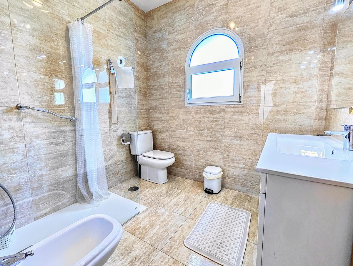The main floor is distributed with a large living room with a large window with direct access to the pool area. Fully furnished and equipped independent kitchen. 1 exterior double bedroom. 1 full bathroom with shower. Large entrance hall with storage areas.