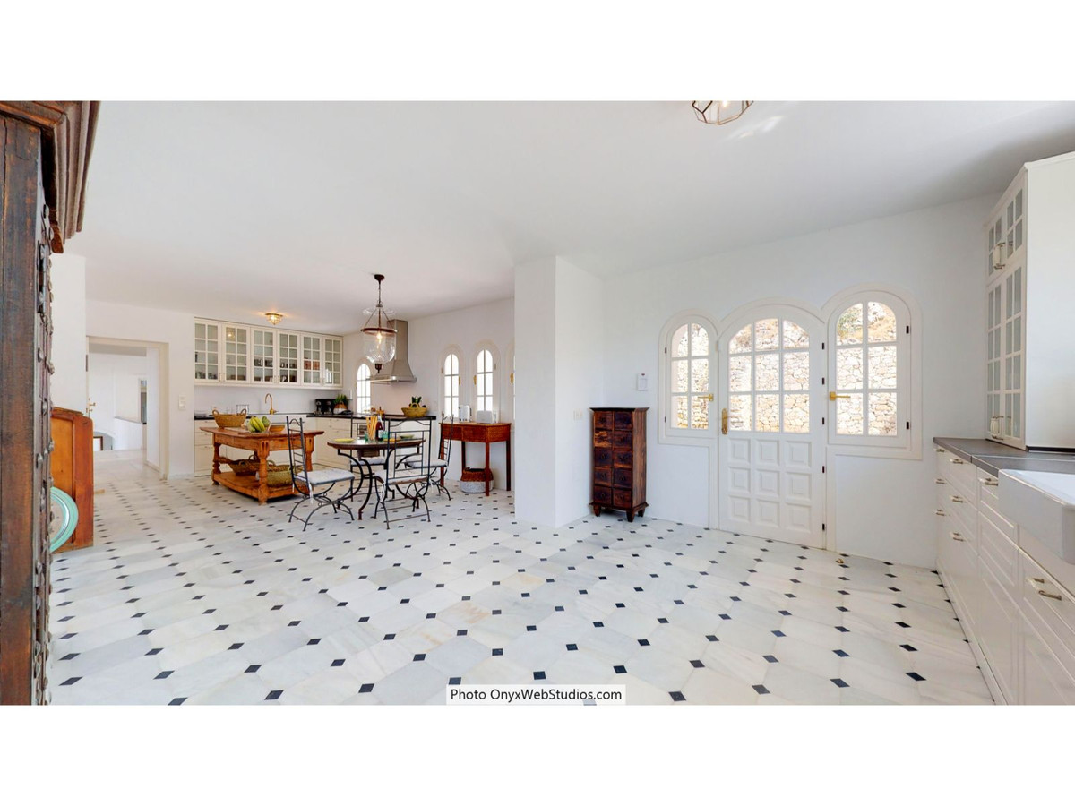 The Plot is 6092 sqm with mature garden. Impressive entrance driveway from street is leading to the villa. Villa at approx. 1.135 sqm with entrance hall leading to a large lounge with high ceilings and a fireplace, dining area and 3 doors out to the partly covered terrace with beautiful sea views and an infinity pool with heating.