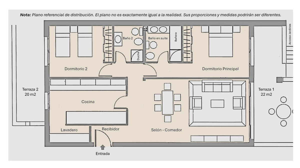 • 2 spacious bedrooms (master en suite) with two huge terraces facing east and west to enjoy the sun throughout the day.