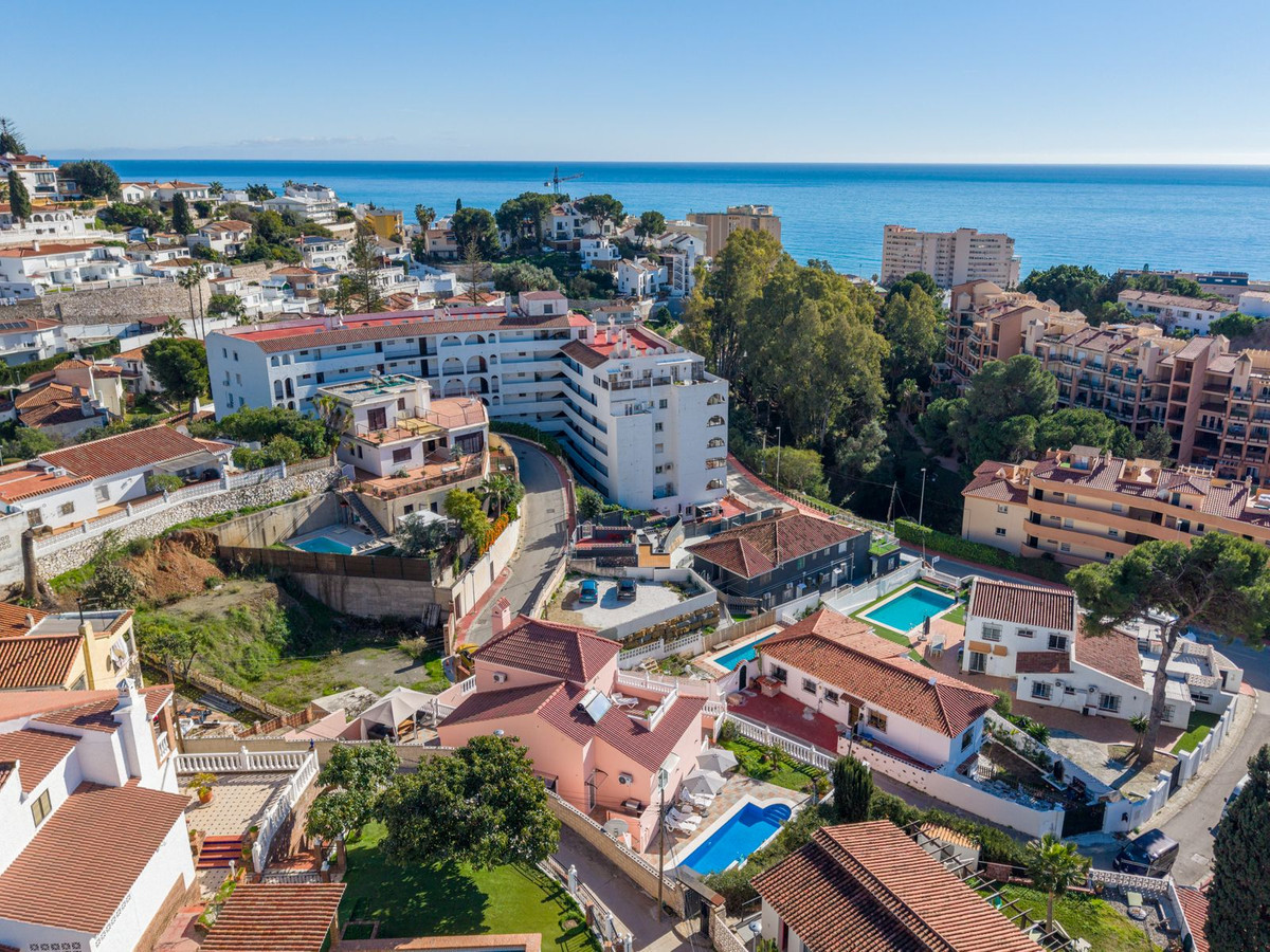 The house features air conditioning throughout and an open-plan layout between the kitchen and living room, creating a bright and airy atmosphere. Outdoors, there are multiple social areas for enjoying the pool and terrace, and parking for up to six cars. From certain areas of the house, you can even catch glimpses of the sea.