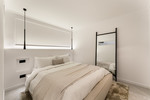 On the upper floor, the three bedrooms are laid out to provide privacy and convenience. Each has an en-suite bathroom and direct access to a terrace, creating private outdoor spaces with outstanding sea and mountain vistas. The master suite stands out with a larger terrace, spacious proportions, and a refined interior atmosphere. These features create a perfect balance of functionality and relaxation, allowing residents to enjoy views that capture the essence of the Costa del Sol.