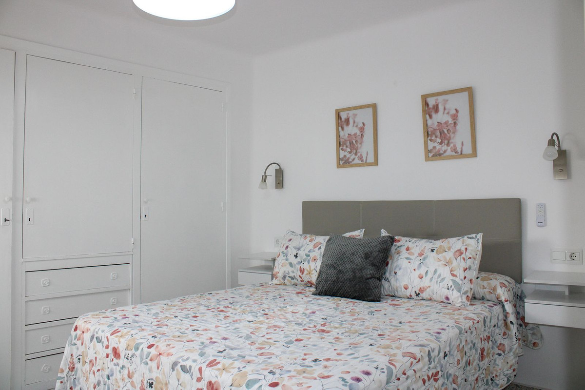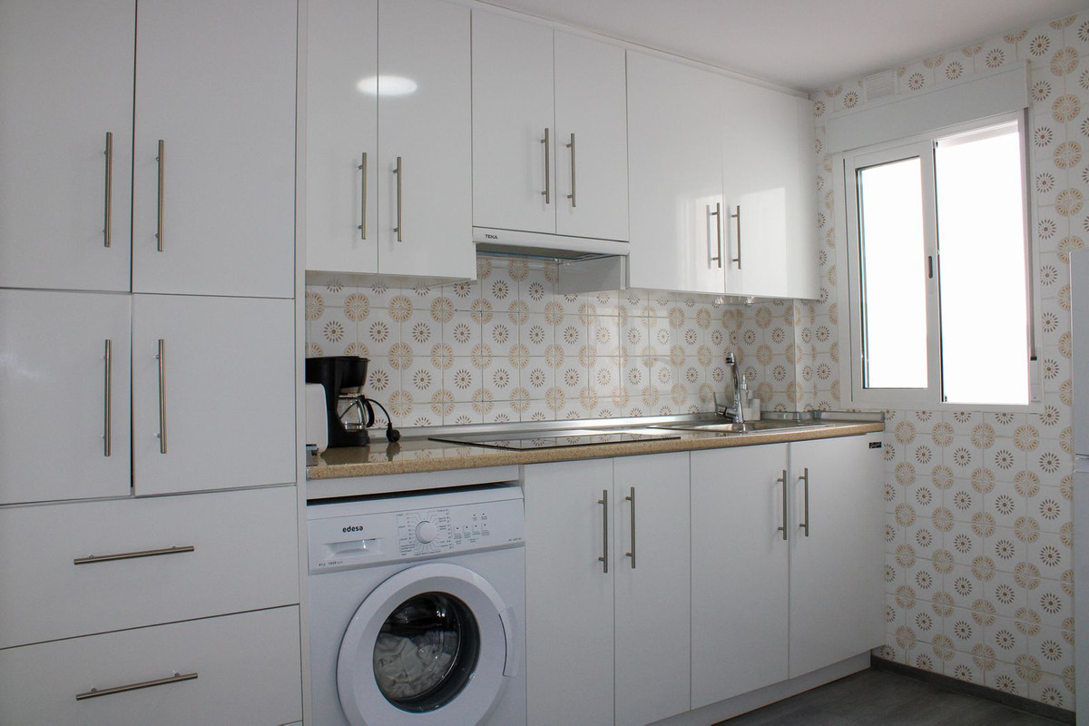 A spacious newly renovated apartment of 91 square meters with 2 bedrooms, a bathroom, kitchen and a living room with lots of light all day long. Along the entire long side of the living room you have a balcony overlooking the street and in a southeast position. One of the bedrooms has access to an inner courtyard beautifully decorated with tiles in an arabesque style. Without a doubt a fantastic place to enjoy.