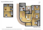 Magnificent property with sea views and 3,600 m² plot in Estepona This exceptional property in Estepona boasts a spacious 3,600 m² plot and a privileged location with beautiful sea views stretching as far as Africa and Gibraltar. The main house, with its 3-metre-high ceilings, impresses with a spacious living room whose 180-degree window front opens up views of nature and the sea. An imposing 2-metre granite fireplace with glass doors forms the heart of the room and can heat the entire house. In addition, underfloor heating in the three bedrooms ensures pleasant warmth. The bedrooms and bathrooms in the main building have individually thermostat-controlled underfloor heating via a large solar panel system and a separate 600-litre boiler. All three bedrooms have spacious bathrooms, with the master bathroom equipped with a whirlpool bath – ideal for relaxing hours. The light-flooded conservatory offers a fantastic view of the well-tended garden and the large pool. The spacious kitchen is equipped with high-quality electrical appliances and is complemented by an adjoining utility room. The property also offers two separate granny flats, each with a private entrance, its own kitchen and two bathrooms – perfect for guests, staff or as independent units. A completely separate, cosy pool house with a kitchen, utility room, fireplace and bathroom creates additional living or relaxation options right by the pool. The large swimming pool is heated by solar panels and heat exchangers. Hot water is produced by the solar panel system. Outdoor area & amenities. Spacious tiled terraces • Garage for two vehicles • Several basement rooms • Extensive garden with large pool • Absolute tranquillity yet close to restaurants, hospital and the sea. *** Only a 5-minute walk to the beach The property was extensively modernised in 2014 with a Swiss architect and has an energy certificate category A/B, a rather rare energy efficiency rating on the Costa del Sol. An ideal home for large families who value peace and privacy while being conveniently close to all restaurants, bars and shops. This property combines spaciousness, warmth and Mediterranean charm in a unique way.
