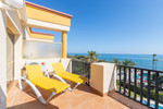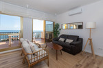 Spectacular beachfront penthouse with panoramic sea views.Two bedrooms, two bathrooms, and a living room, all opening onto a terrace with wonderful, endless sea views. The fully equipped kitchen is integrated into the living room. It has an elevator that takes you directly to the pool and beach access. Recently renovated, it features practical and functional Nordic-style decor, plenty of light, and large windows opening onto a spacious terrace with wonderful views. Independent air conditioning (hot/cold) in all rooms, awnings, electric shutters, etc. Gated parking, private security, and walking distance to shopping centers.