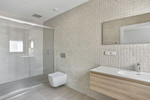The first floor features three additional bedrooms, all with en-suite bathrooms. The master suite offers spectacular sea views and access to a large solarium — the perfect spot to relax and enjoy the Mediterranean sunsets.