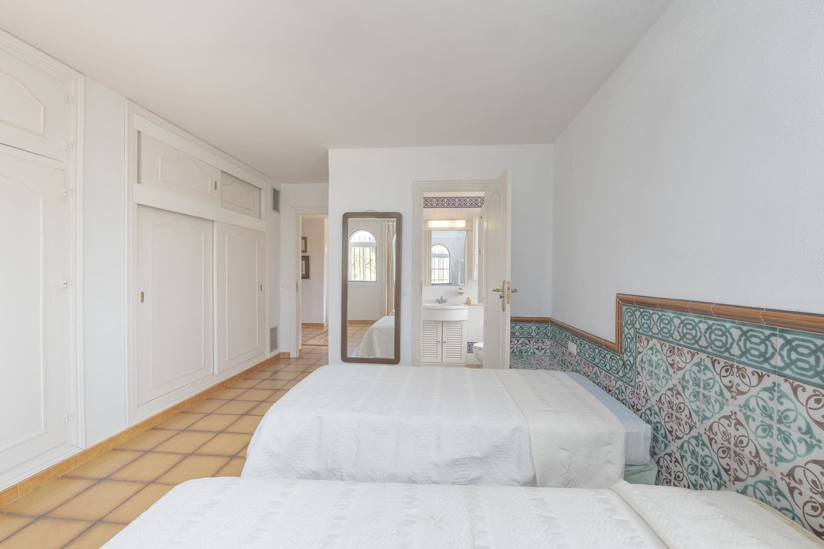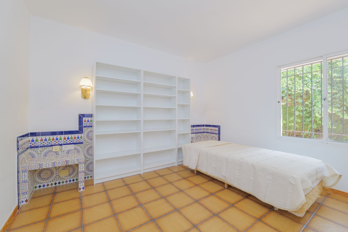 Detached Villa at the renowned and consolidated residential area of El Mirador de Marbella. A house designed for relax and enjoyment, near schools, supermarkets and just a stone's throw away from the A7. With the enchanting Andalusian scent, and a 800sqm plot, the two level dwelling displays a fully fitted kitchen with pantry and independent entrance, a guest toilette, the cosy living room with access to the covered 20sqm terrace and garden plus an adjacent dining room; besides, two ample bedrooms that share a bathroom with Sauna. On the upper level, the main bedroom, with bathroom en suite, lounge and small office like corner adding a second 10sqm terrace with a glimpse of the sea. This charming traditional style property boasts, eventually, a nice and sunny pool and a BBQ area conveniently situated and covered. Private parking also covered. Charm and details for this property with an enviable location, within Marbella town area, with plenty of amenities and leisure offer at hand, and yet, tranquil and private, as one could expect from a property of this level.