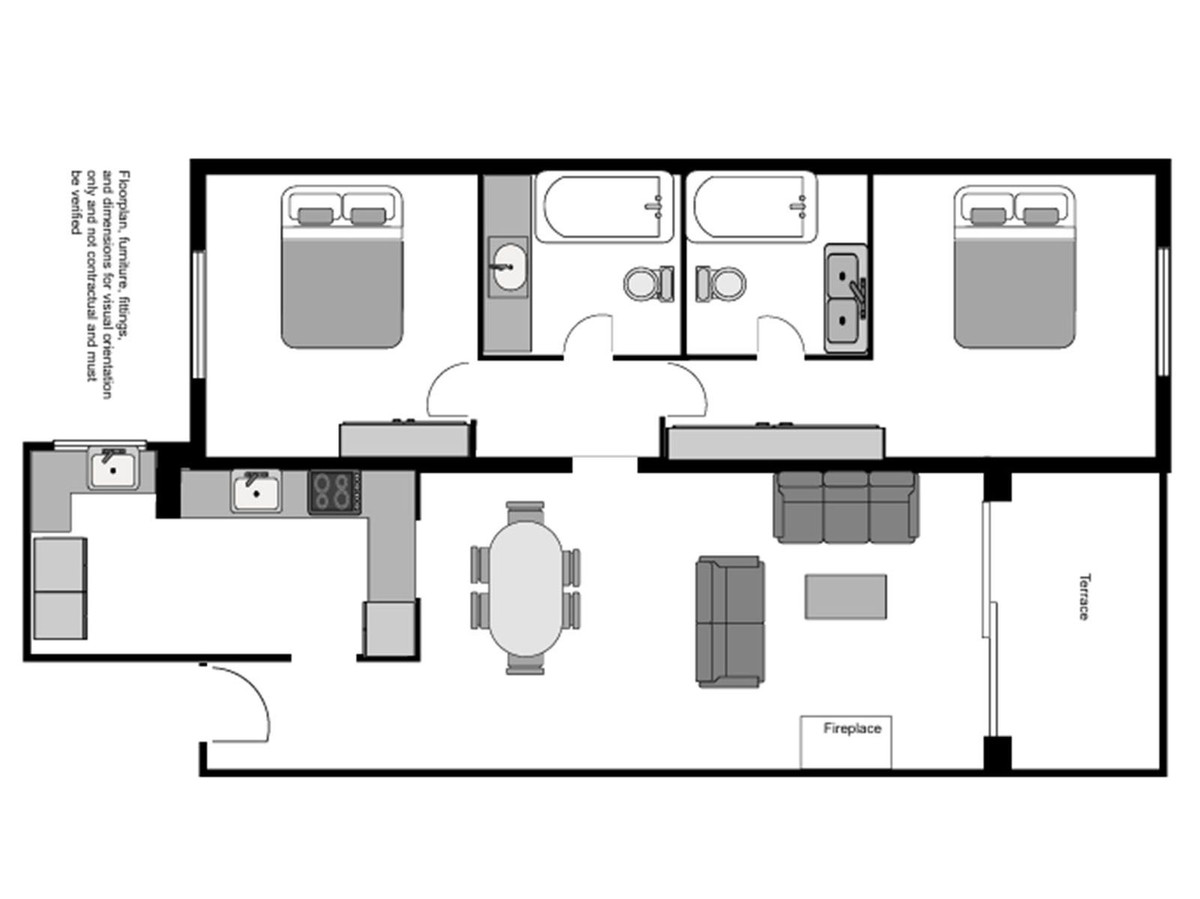 For those looking for a 3-bedroom apartment, there is a large kitchen that could potentially be turned into a 3rd bedroom, combined with the creation of an open-plan kitchen.