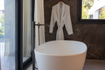 - De bovenverdieping bestaat uit drie tweepersoonsslaapkamers, waarvan er twee een grote badkamer delen. De ouderslaapkamer heeft een en-suite badkamer, een inloopkast en een kleedruimte. Daarnaast heeft deze kamer een eigen open haard en twee terrassen, ook met uitzicht op de tuin en het zwembad.