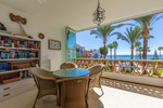 Prachtig appartement op een middenverdieping in eerste lijn aan het strand, met spectaculair uitzicht op de zee, het strand, Gibraltar en Afrika, gelegen in de exclusieve Baai van Casares naast een beschermd historisch gebied met een oude Arabische toren, binnen het prestigieuze complex La Perla de la Bahía met uniek ontwerp dat Andalusische en Arabische stijlen combineert, omgeven door weelderige tuinen, zwembaden (twee verwarmd), decoratieve fonteinen en ontspanningsruimtes; op slechts 2 minuten lopen van drie stranden, twee gerenommeerde restaurants en het beroemde golfresort Finca Cortesín, bekroond als beste golfresort van Spanje en gastheer van de Solheim Cup 2023; strategisch gelegen tussen Estepona, Puerto de la Duquesa en Sabinillas, slechts 5 minuten rijden, met gemakkelijke toegang tot winkels, recreatie en andere golfbanen; besloten gemeenschap met 24 uur beveiliging en videobewaking; inclusief één parkeerplaats in de garage en een berging; ideaal zowel als droomwoning als investering met hoog verhuurpotentieel.