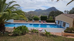 Surrounded by a rustic landscaped garden featuring palm trees and cypresses, the main house connects seamlessly with the pool area via a large terrace. Wide steps and a ramp lead down to the impressive 20x5m pool, which can be covered by a retractable greenhouse-type roof and heated for year-round enjoyment. The pool area is adorned with sunbathing terraces and vibrant flowers. A pool house with a shower, which could also double as a gym, completes the outdoor oasis.