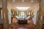 De prachtige lommerrijke tuinen leiden naar een glazen studio/yoga/meditatiehuis gebouwd in de heuvel en een kinderspeelplaats. Uiteraard beschikt de woning over airconditioning en videobewaking.