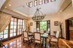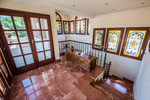 The main house, a splendid Spanish villa, climbs behind the pompous natural stone-built driveway with fountains. Master Bedroom with luxurious marble bathroom and terrace with distant views, 4 further bedrooms with terraces and marble bathrooms and 2 children's rooms with shared bathroom. Spacious living spaces with charming and cosy furnishings completes the Spanish flair. In total, the house also has 6 terraces, kitchen, 2 garages for 4 cars, a spacious and fully equipped fitness center and a beautiful pool landscape with 2 differently tempered pools and a whirlpool. The beautiful green garden leads to a built in the hillside glass studio / yoga / meditation house and a children's playground.