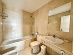 Sold fully furnished, the apartment comprises two spacious double bedrooms and two bathrooms, including a full shower room and an en-suite bathroom. The open-plan American kitchen flows seamlessly into a bright living-dining area.