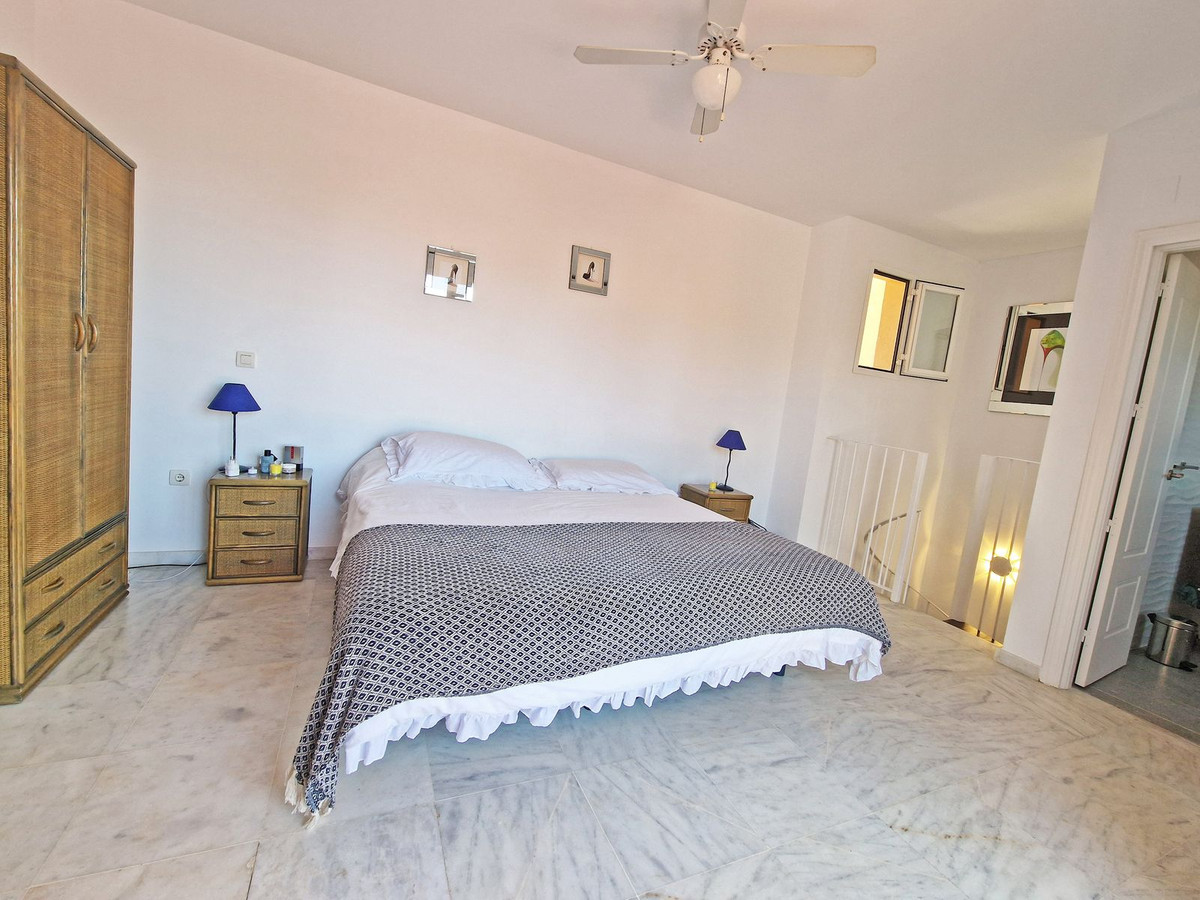 This bright and impeccably maintained apartment offers a smart and functional layout. On the upper floor, you'll find a luxurious master suite complete with a private terrace, creating a peaceful retreat with open views. On the main level, two additional double bedrooms share a well-appointed bathroom, ideal for guests or family.