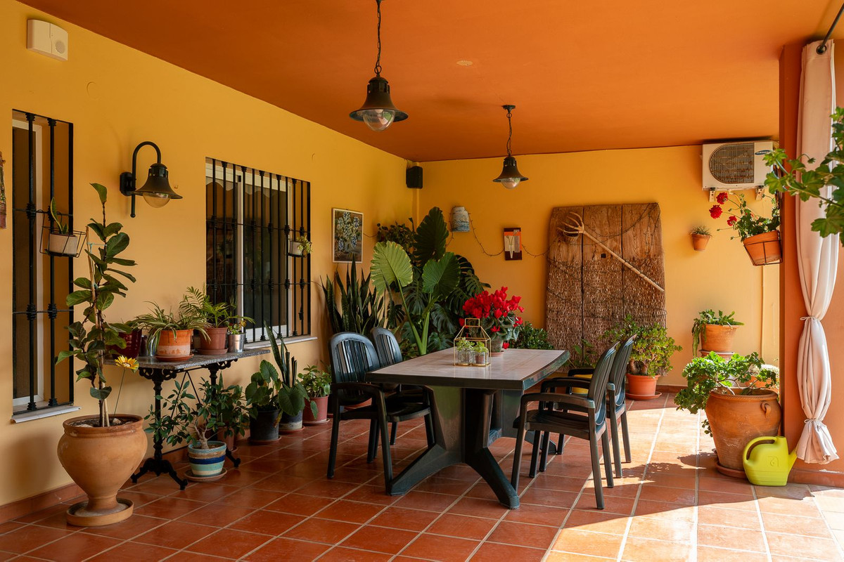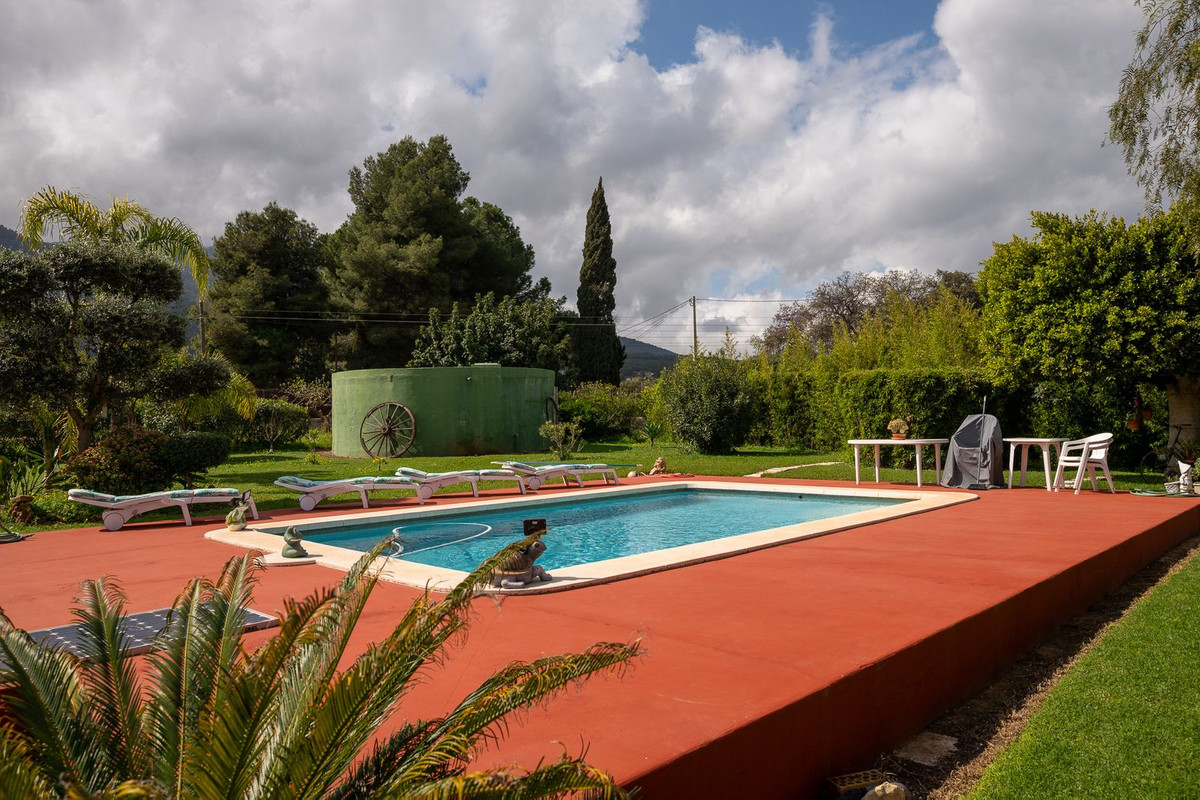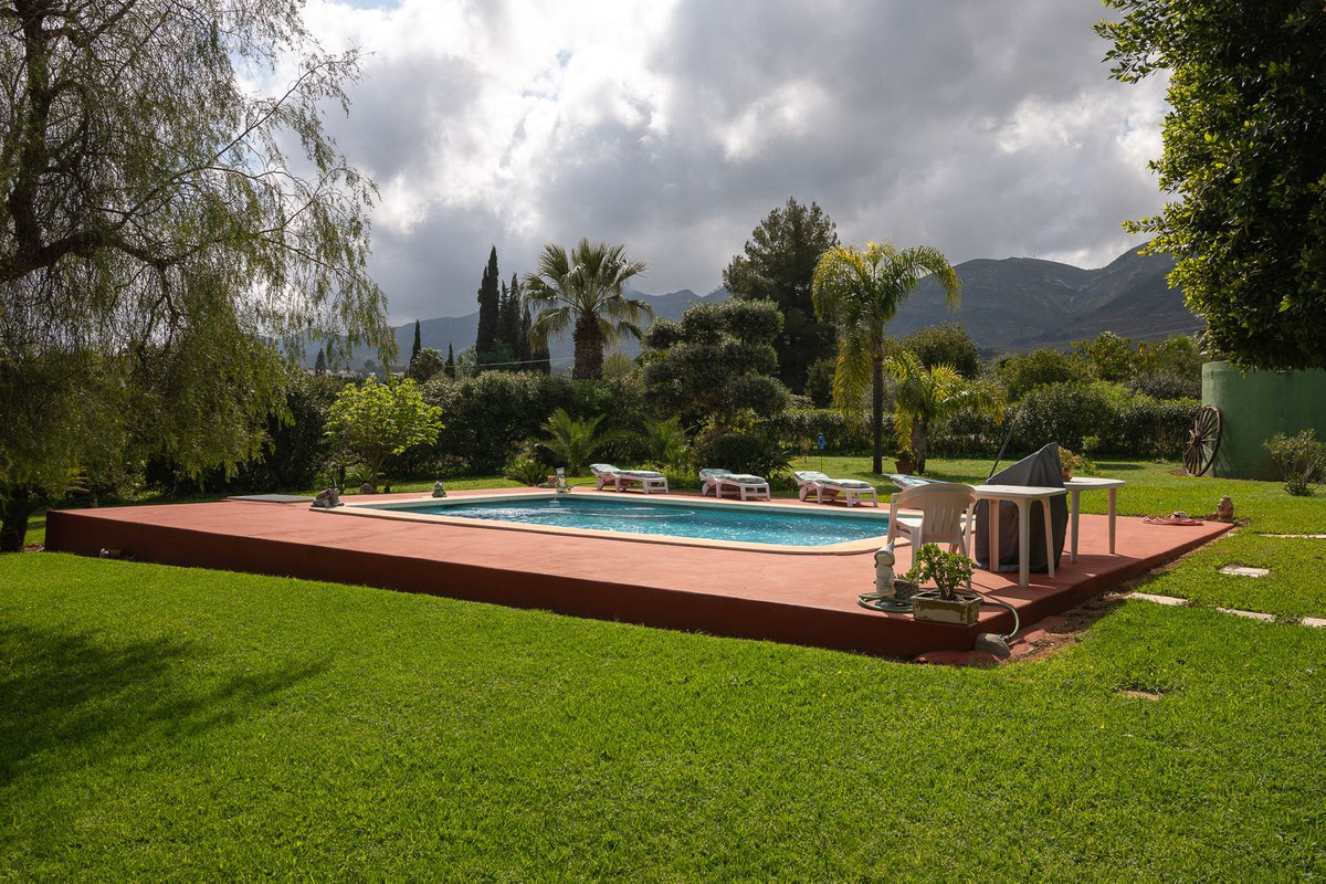 An unbeatable 11,000 m2 finca with views of the Alhaurin mountains and just 5 minutes from Lauro Golf. Within its perimeter there is a house in one level plus an independent apartment having both properties access from a really spacious cover porch. The main house comprises a cozy living room with a fireplace, a large fully equipped kitchen, and two double bedrooms both with ensuite bathrooms and built-in wardrobes. A third bedroom, also with a bathroom can be used for various purposes. At the rear of the house, there is an office with a separate entrance that could be converted into an studio. The apartment has a close terrace, fitted kitchen, living room, bedroom and a bathroom. The land is fully fenced and has municipal water, own well such as an enormous water deposit. Planted with a variety of fruit trees, lovely 8x4 private pool and an incredible barbecue area with a wood-burning oven ideal for family gatherings. There is a large covered parking area, a chicken coo,and a storage room. An ideal property for nature lovers, close to all amenities and services and ideal such as for a family home or us an investment.