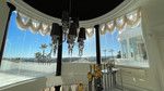 In de zuidwestelijke hoek bevindt zich een witte pergola met een rieten dak, die een barbecueplek herbergt, uitgerust met een koelkast en nachtverlichting. Talrijke palmbomen geven de omgeving een exotische en elegante uitstraling.