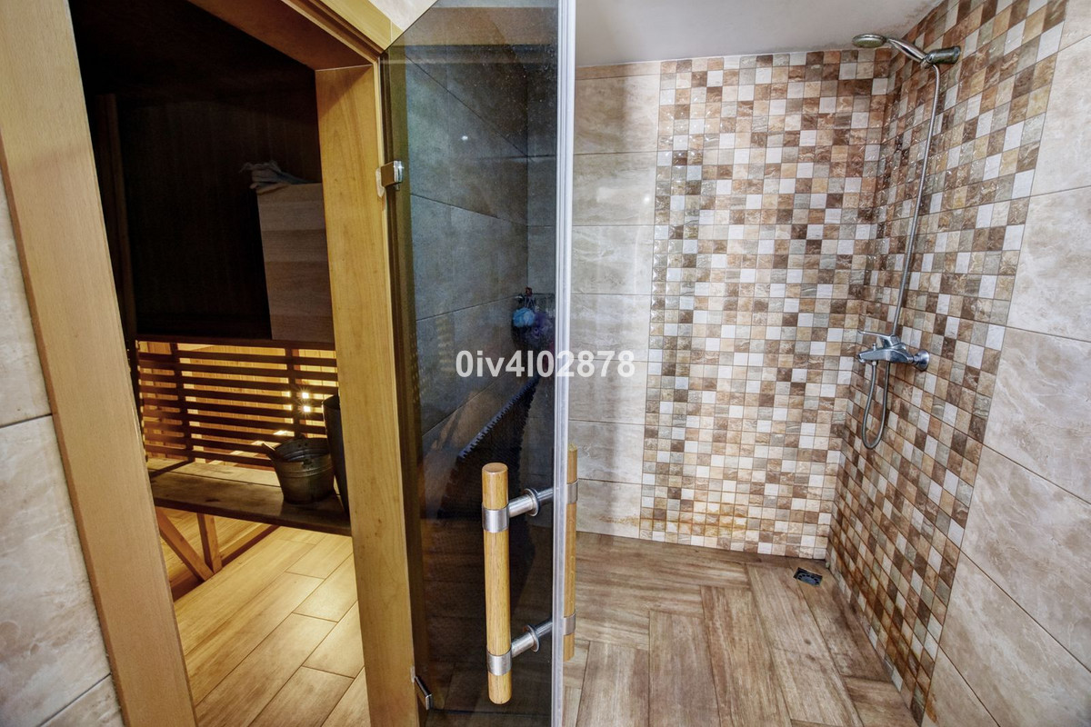 Spacious and high quality townhouse located close to Arroyo de la Miel town centre ! On ground level there is an immaculate hallway which leads to an independent fully equipped kitchen, a lounge/dining area, guest bathroom, and lovely spacious terrace with plenty of afternoon sun. The hall also lead downstairs and upstairs. Downstairs there is a large garage , utility room and lounge with Sauna and shower. On first level continuing from hallway there are 3 bedrooms (one currently used as an office) and two bathrooms, where one of these bathrooms is ensuite to master bedroom. Going upstairs to second level there is a very large bedroom with another terrace benefiting from sea views, lots of afternoon sun and outdoor shower. Immaculate house with oustanding qualities and great location, must be seen!!
