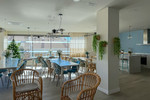 A state-of-the-art gastro-themed event room with a fully equipped kitchen — ideal for entertaining, meetings, or social gatherings.