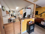 Large kitchen furnished with laundry room with cabinets, halogen stove and city gas
