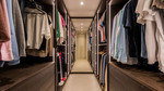 De grote hoofdslaapkamer is ingericht met een neutraal palet en luxe stoffen en heeft een eigen en-suite badkamer en inloopkast.