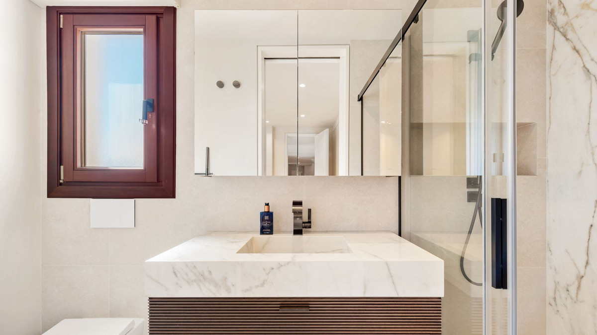 Een ruim, volledig gerenoveerd penthouse met 4 slaapkamers en een grote hal die leidt naar de open woonkamer. De moderne, volledig ingerichte designkeuken van SIEMATIC met de nieuwste Miele-apparatuur en ontbijteiland biedt een uitnodigende ruimte voor informele bijeenkomsten met familie en vrienden. De gecombineerde open keuken, eetkamer en woonkamer zijn perfect verdeeld en leiden allemaal naar het grote terras waar verschillende sferen zijn gecreëerd. Geniet van de prachtige mediterrane zon met een prachtig decor van de ‘La Concha’ berg of geniet van een meer verfrissende plek onder de geautomatiseerde pergola.